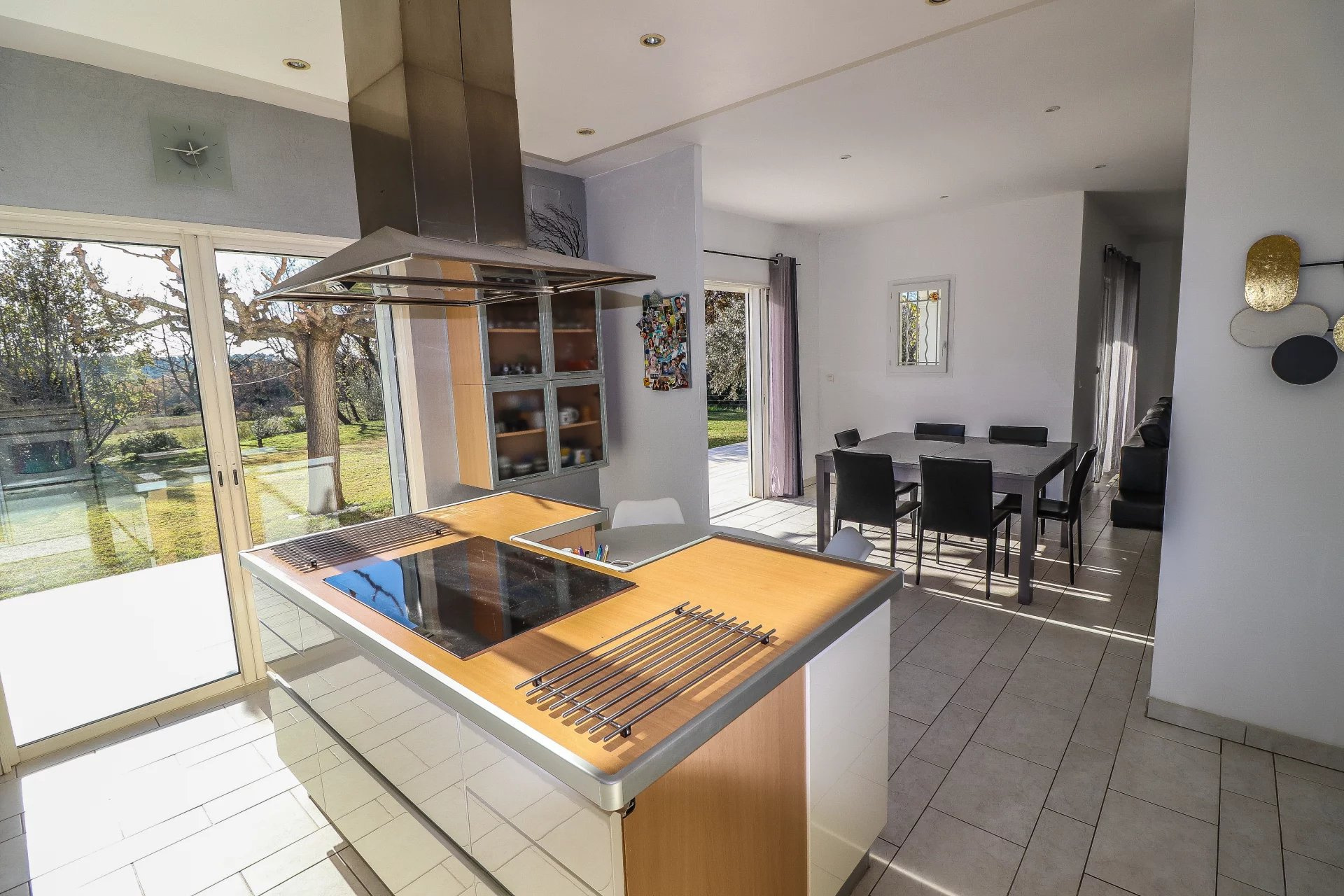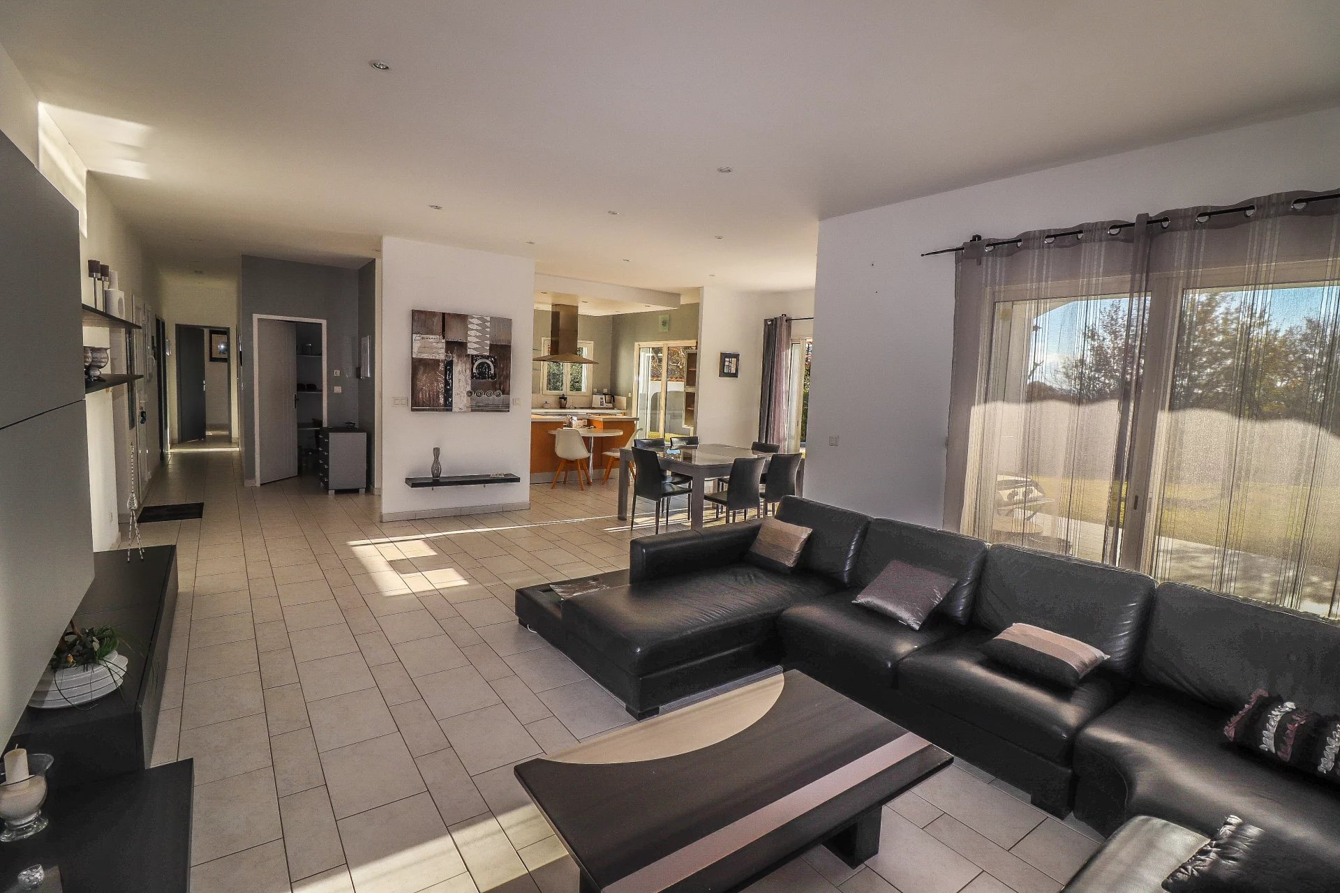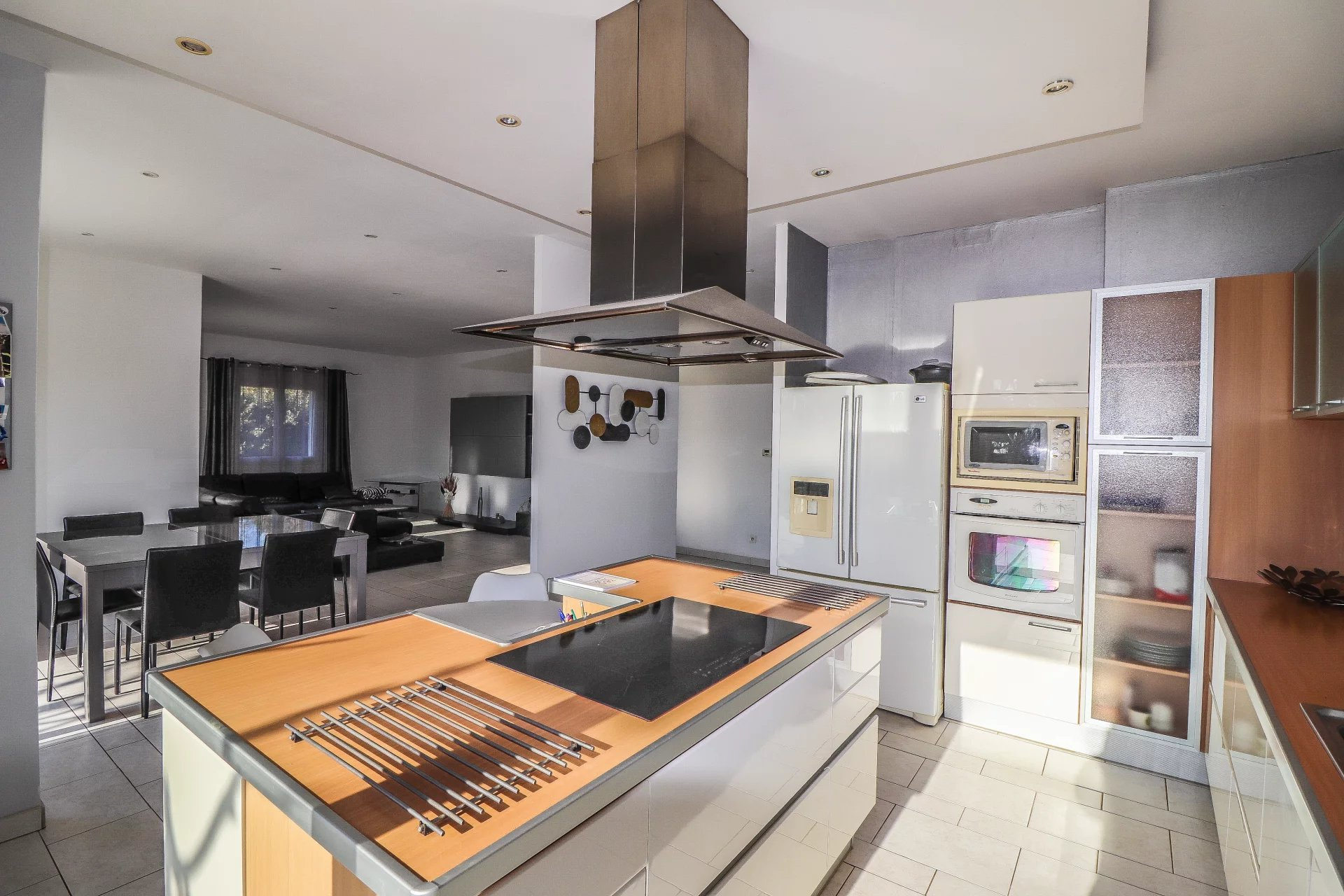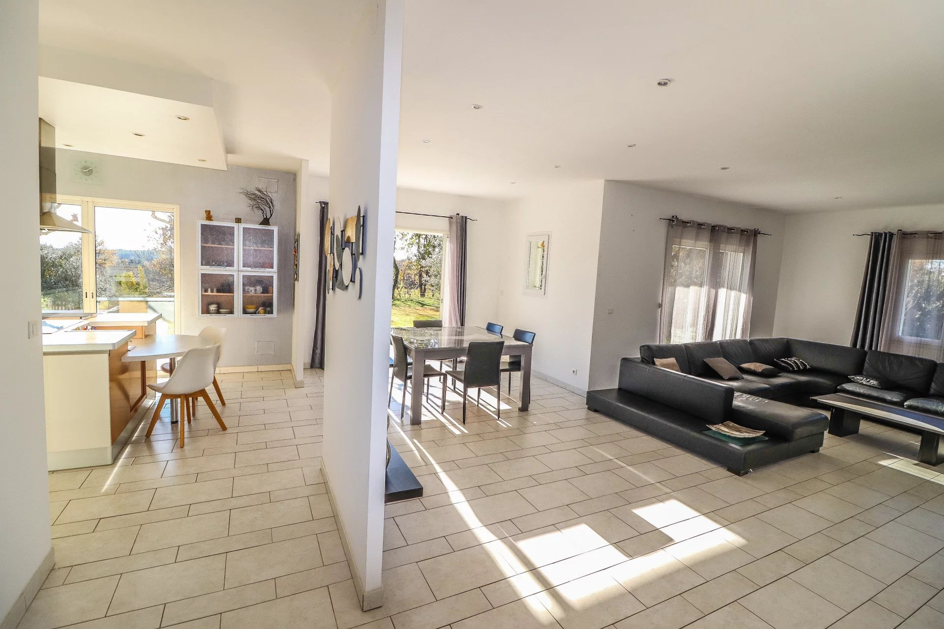 VENDU PAR VOTRE AGENCE SOGIP ! Découvrez cette belle villa tout de plain pied de 140m² avec 3 chambres sur un terrain plat de 1200m² avec piscine, pool house, garage et atelier. Elle est composée d'un vaste séjour de 52m² avec de grandes baies vitrées plein sud, une cuisine ouverte équipée de 20m², cellier, le coin des parents avec une chambre de 12m², un dressing de 10m², une salle de bains avec douche et baignoire de 10m², un wc. Un dégagement nous conduit vers la deuxième partie nuit composée de 2 chambres, une salle d'eau, un wc, une buanderie, une véranda. Un atelier de 22m², un garage de 24m² et une cave de 22m² complètent les prestations. Beau terrain plat et clos avec portail automatique de 1200m² avec belle piscine à débordement chauffée et son pool house aménagé. Terrasses tout autour de la maison. Chauffage au sol par pompe chaleur. Belle exposition plein sud, au calme avec une vue dégagée. Accès facile proche du village ! SOGIP l'agence historique du village, Caroline et Bruno à votre écoute !
