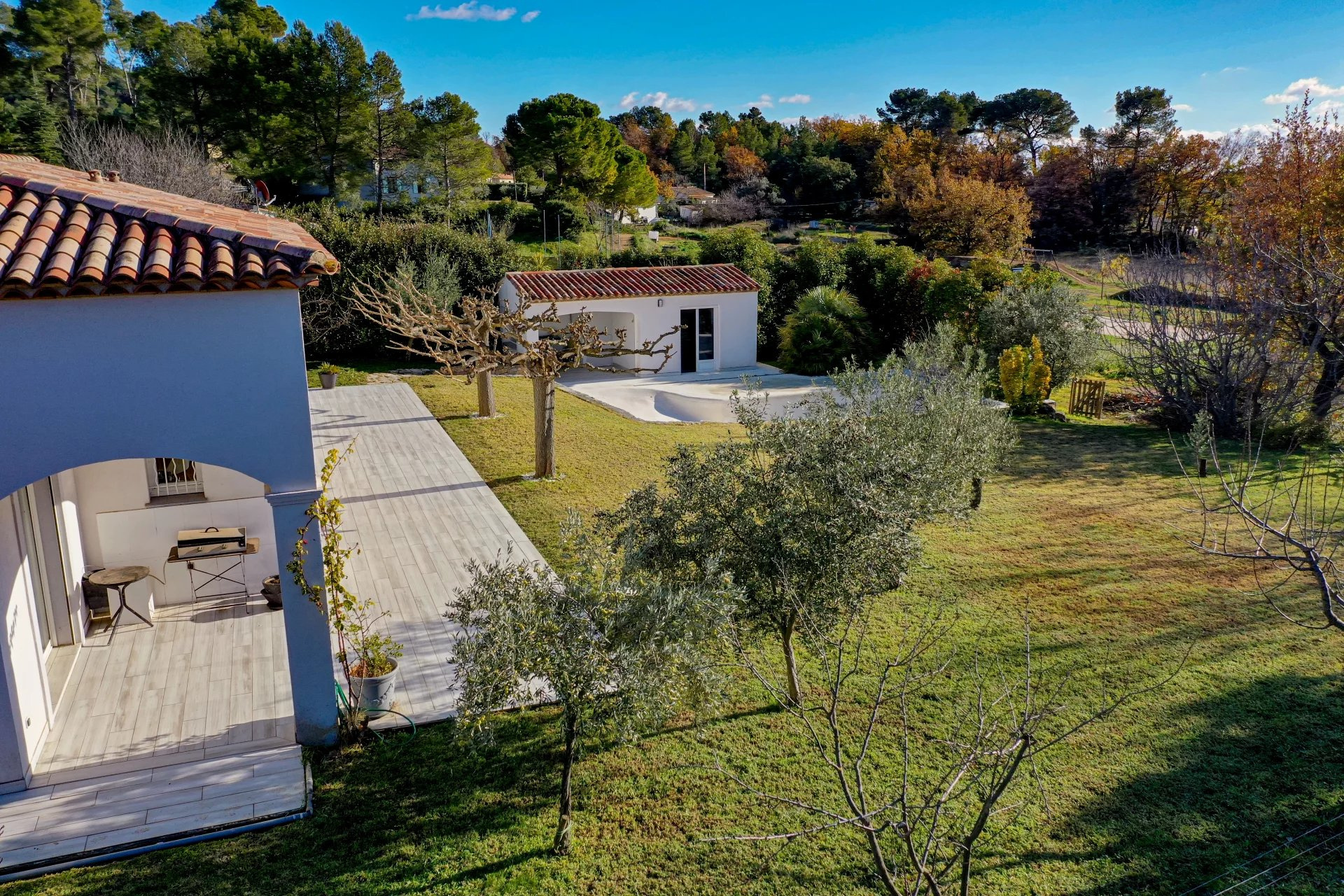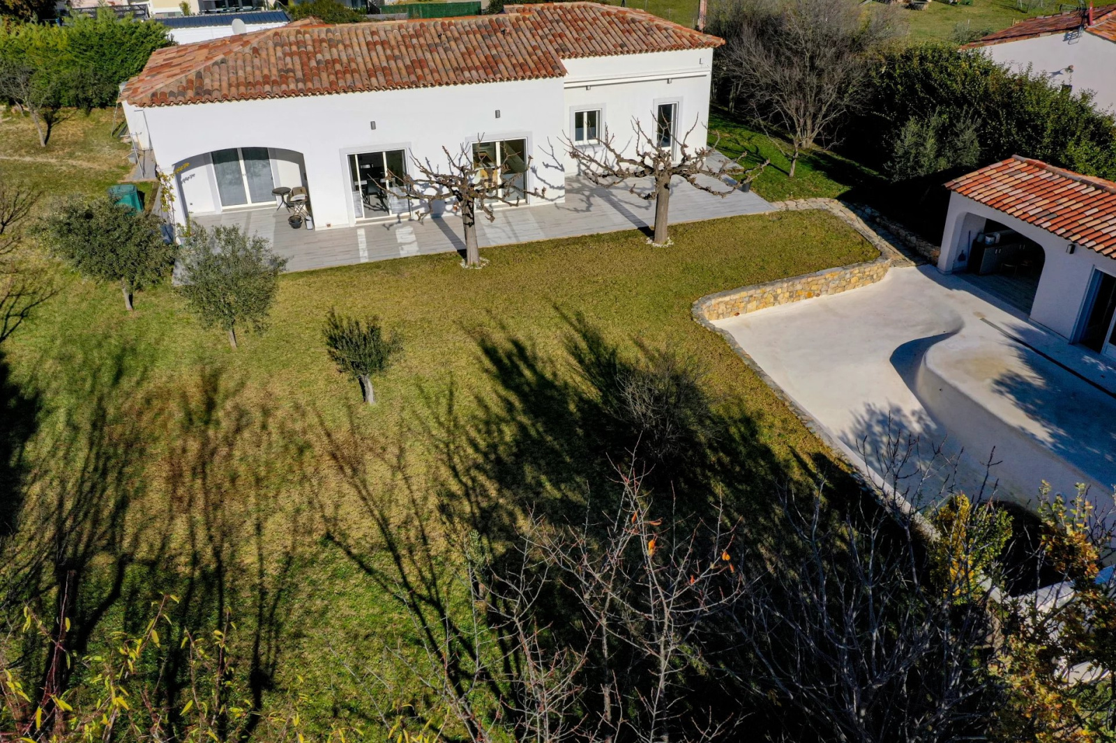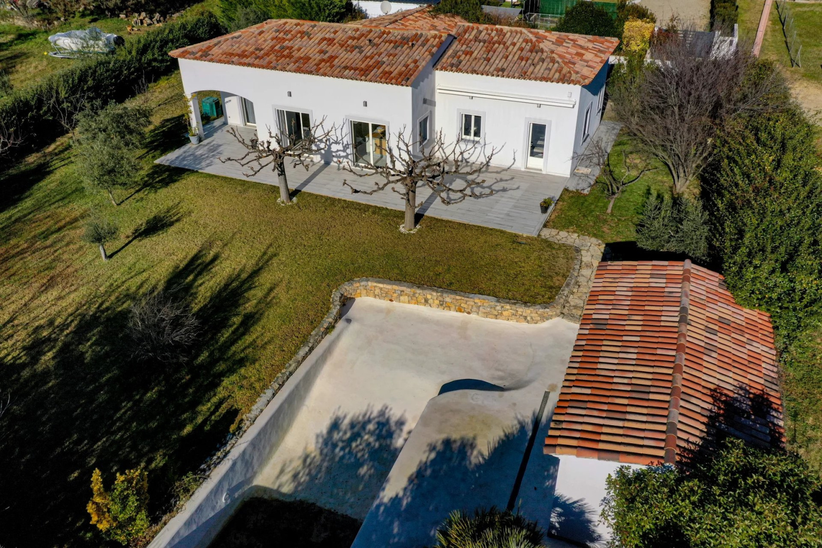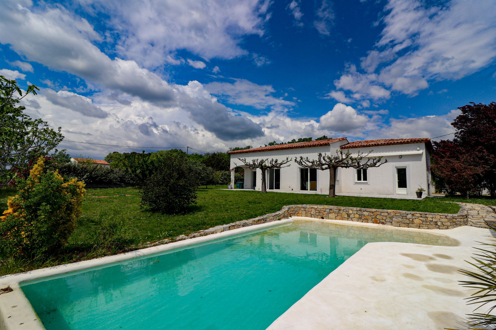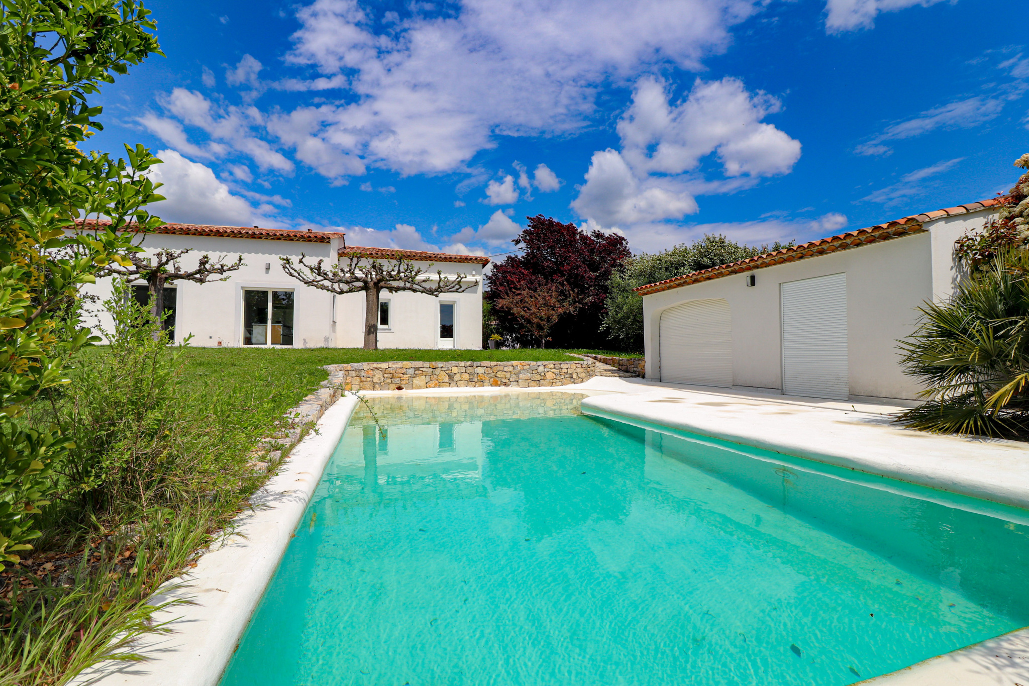 VENDU PAR VOTRE AGENCE SOGIP ! Découvrez cette belle villa tout de plain pied de 140m² avec 3 chambres sur un terrain plat de 1200m² avec piscine, pool house, garage et atelier. Elle est composée d'un vaste séjour de 52m² avec de grandes baies vitrées plein sud, une cuisine ouverte équipée de 20m², cellier, le coin des parents avec une chambre de 12m², un dressing de 10m², une salle de bains avec douche et baignoire de 10m², un wc. Un dégagement nous conduit vers la deuxième partie nuit composée de 2 chambres, une salle d'eau, un wc, une buanderie, une véranda. Un atelier de 22m², un garage de 24m² et une cave de 22m² complètent les prestations. Beau terrain plat et clos avec portail automatique de 1200m² avec belle piscine à débordement chauffée et son pool house aménagé. Terrasses tout autour de la maison. Chauffage au sol par pompe chaleur. Belle exposition plein sud, au calme avec une vue dégagée. Accès facile proche du village ! SOGIP l'agence historique du village, Caroline et Bruno à votre écoute !