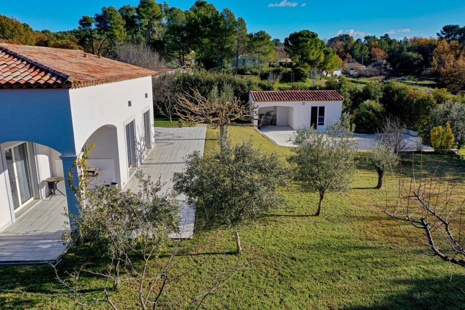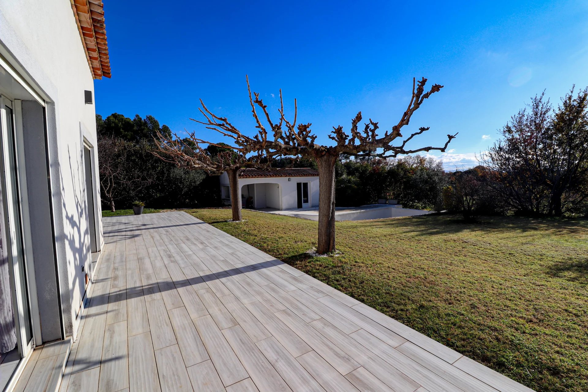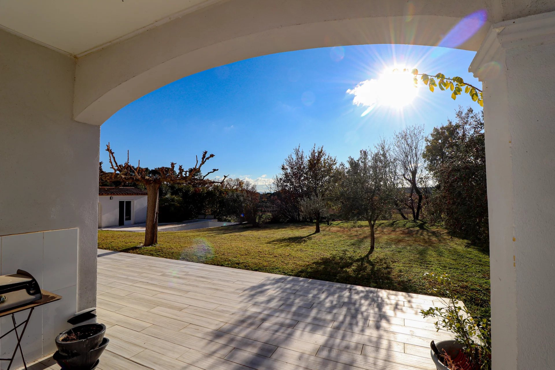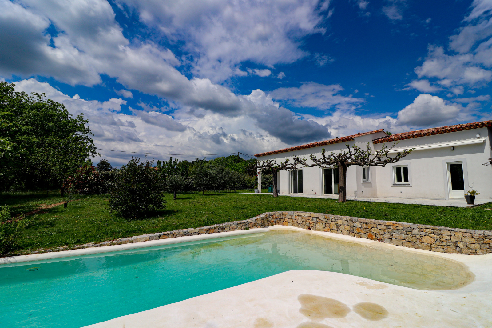 VENDU PAR VOTRE AGENCE SOGIP ! Découvrez cette belle villa tout de plain pied de 140m² avec 3 chambres sur un terrain plat de 1200m² avec piscine, pool house, garage et atelier. Elle est composée d'un vaste séjour de 52m² avec de grandes baies vitrées plein sud, une cuisine ouverte équipée de 20m², cellier, le coin des parents avec une chambre de 12m², un dressing de 10m², une salle de bains avec douche et baignoire de 10m², un wc. Un dégagement nous conduit vers la deuxième partie nuit composée de 2 chambres, une salle d'eau, un wc, une buanderie, une véranda. Un atelier de 22m², un garage de 24m² et une cave de 22m² complètent les prestations. Beau terrain plat et clos avec portail automatique de 1200m² avec belle piscine à débordement chauffée et son pool house aménagé. Terrasses tout autour de la maison. Chauffage au sol par pompe chaleur. Belle exposition plein sud, au calme avec une vue dégagée. Accès facile proche du village ! SOGIP l'agence historique du village, Caroline et Bruno à votre écoute !