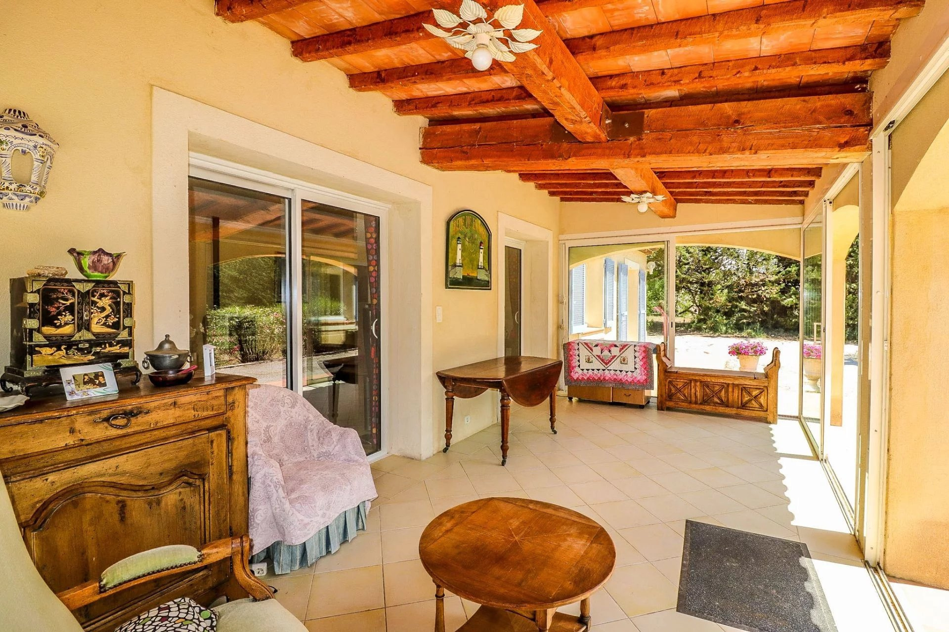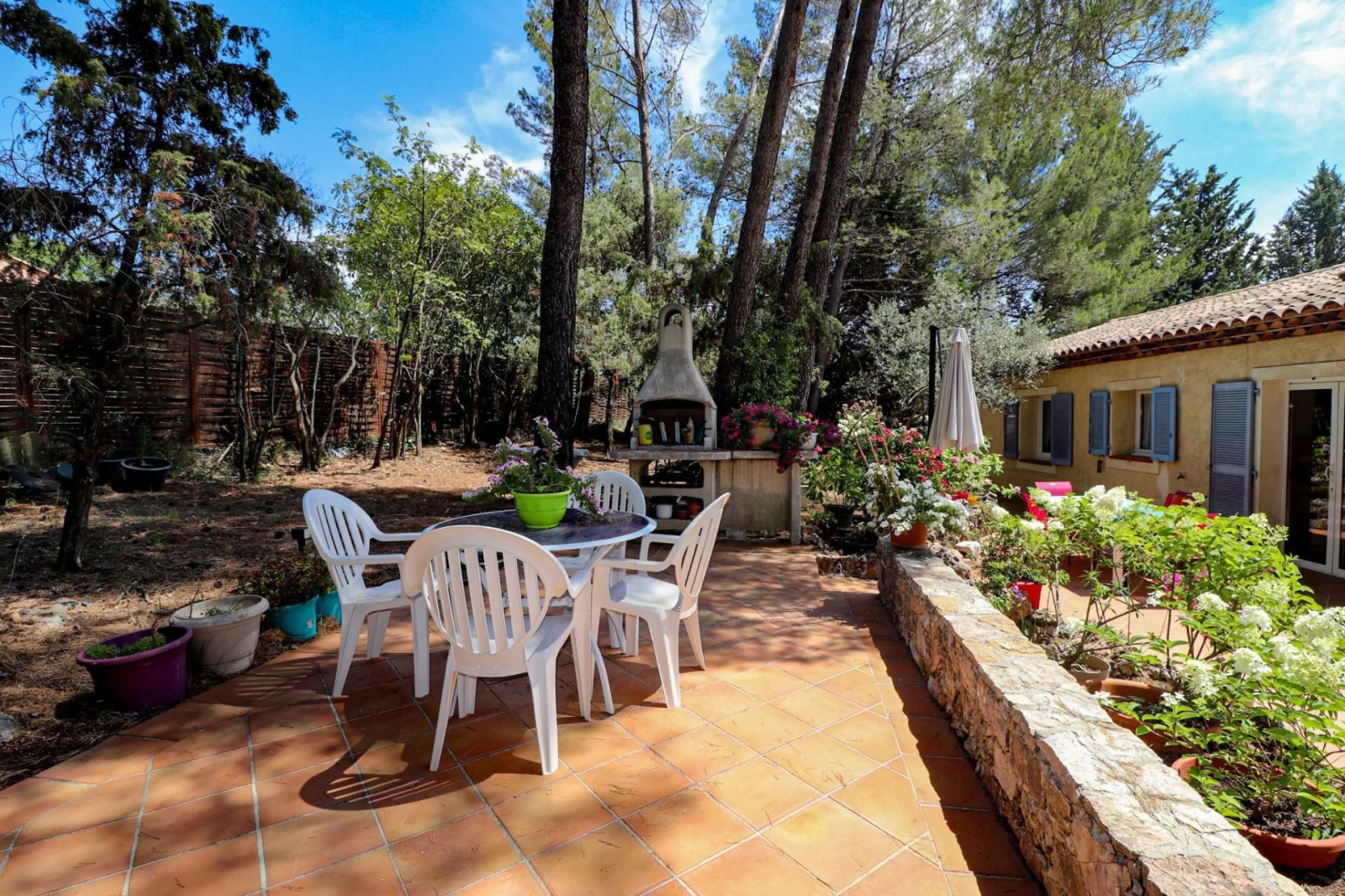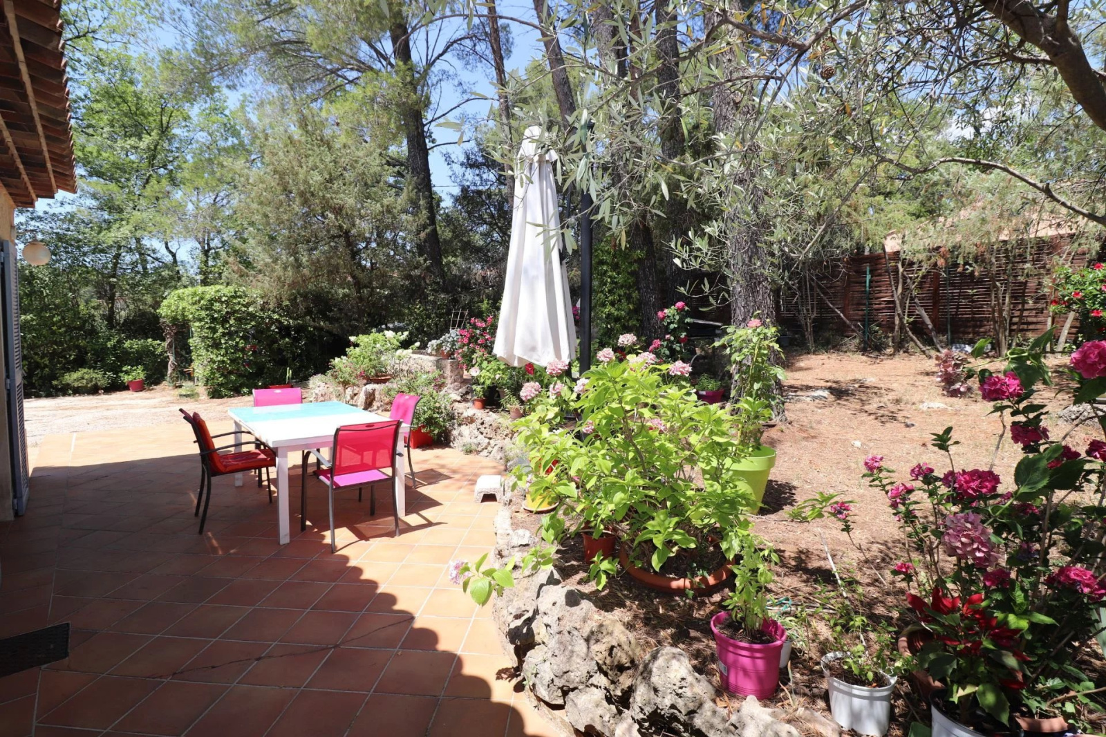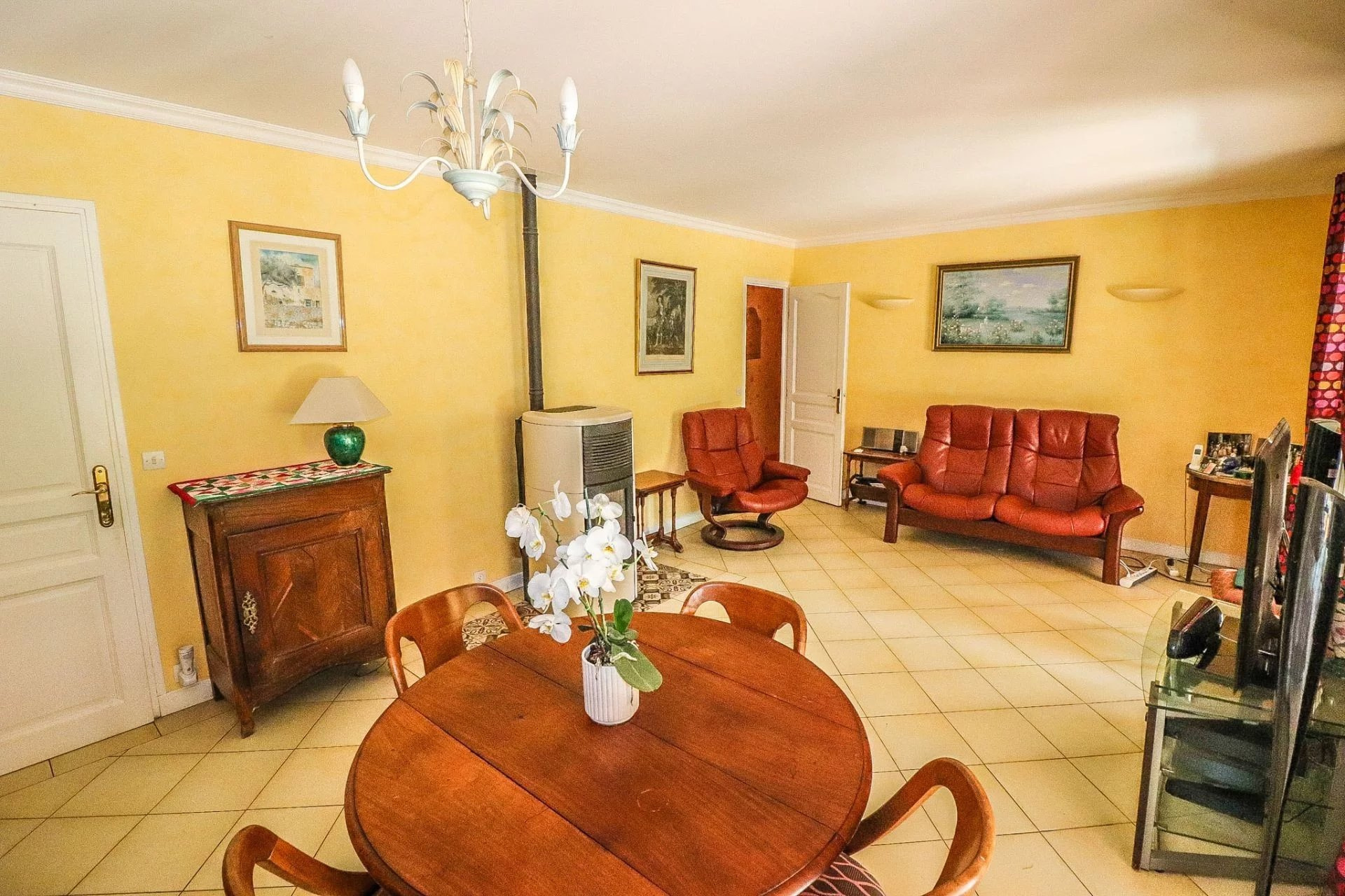 VENDU ! Flayosc, Exclusivité SOGIP - À la campagne, à moins de 2 km du village de Flayosc, jolie maison de plain-pied sur 1100 m² de terrain arboré et paysager avec 3 chambres. Le bien dispose d'un hall-dégagement avec placards, Séjour avec poêle à granules de 26 m² donnant sur une pièce de vie vitrée de 18 m², cuisine indépendante de 9 m², 2 chambres de 11 et 13 m², salle de bain, Wc, une 3ième chambre de 11 m² avec salle d'eau wc et accès indépendant. Assainissement à Réaliser, ce bien est issu d'un détachement de parcelle. Budget micro-station à prévoir. Très beau jardin de 1100 m², arboré et plat, terrasse et barbecue. Des travaux seront à prévoir. Libre au 30/10/2025. Une belle affaire à Flayosc. SOGIP l'agence historique du village.Caroline et Bruno à votre écoute.