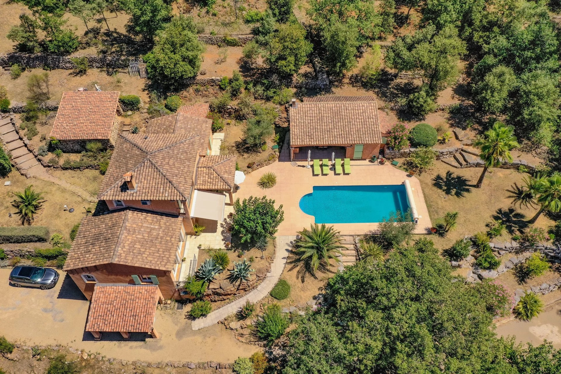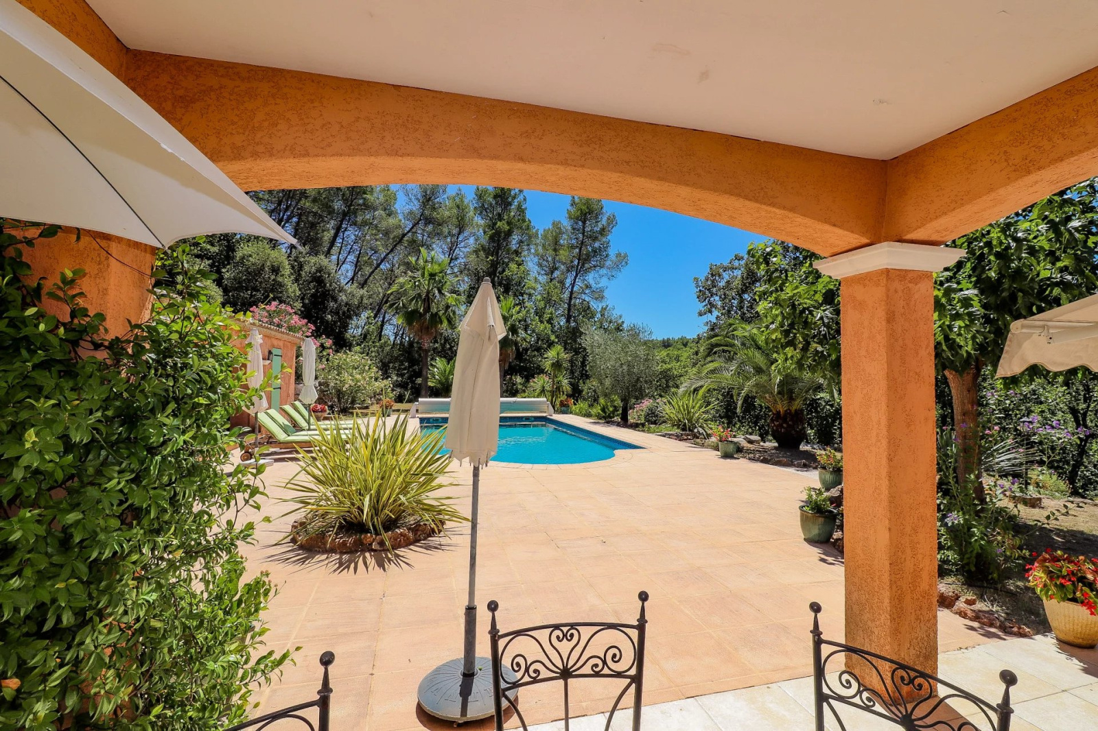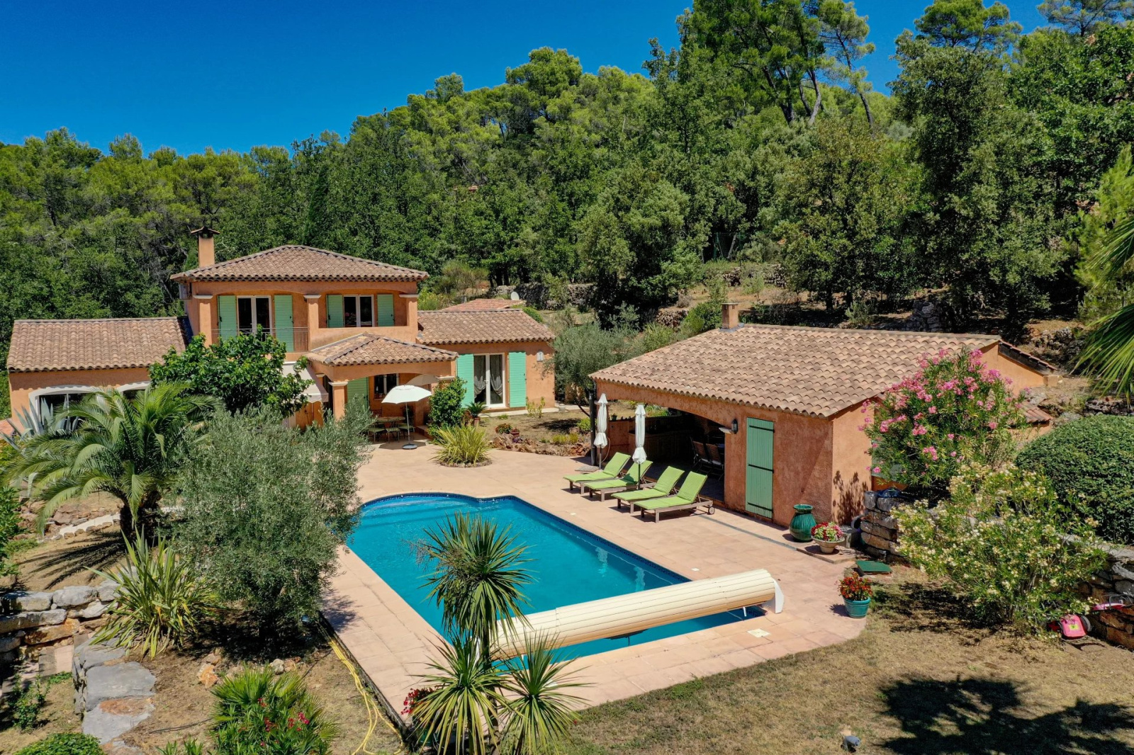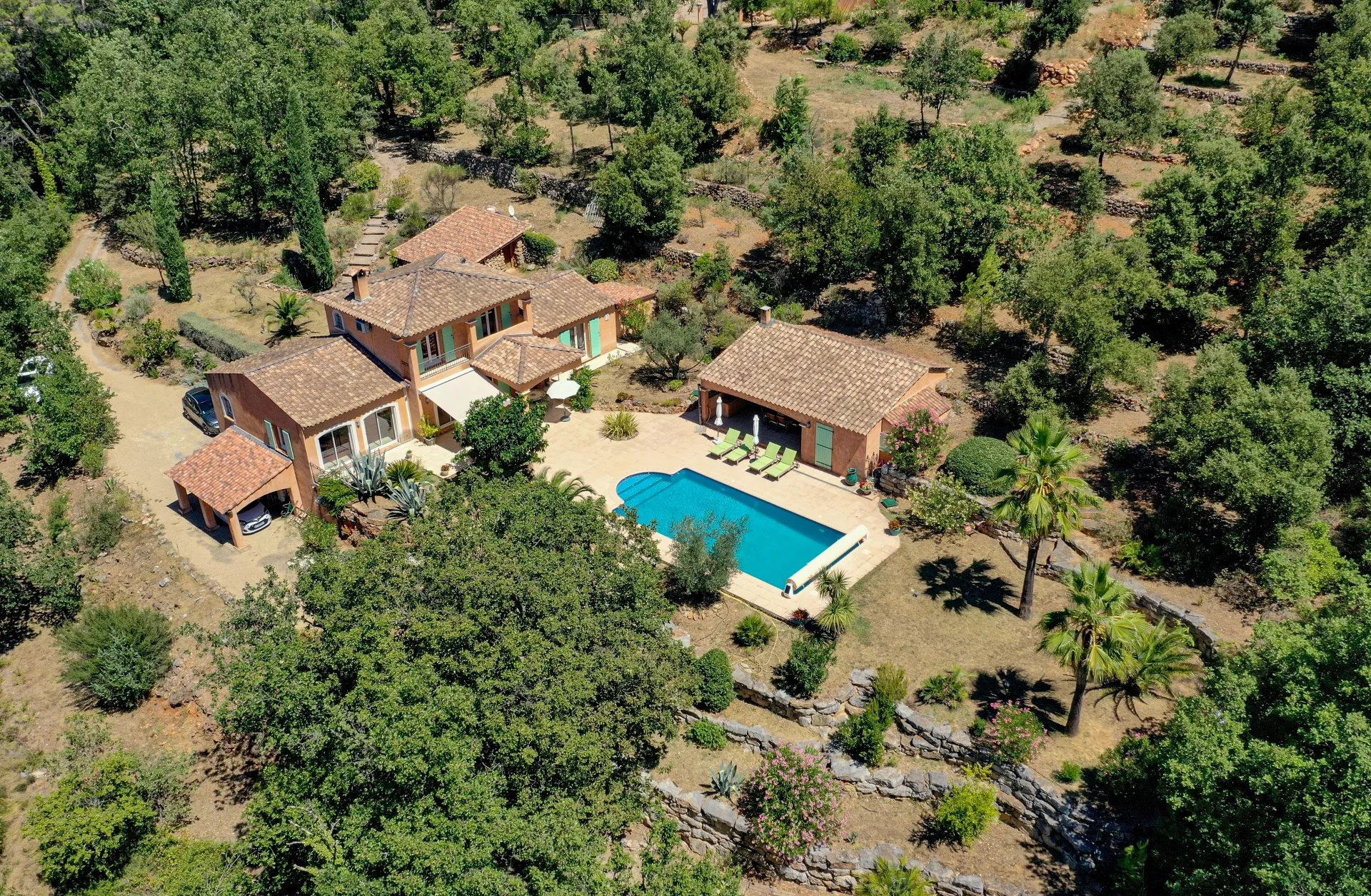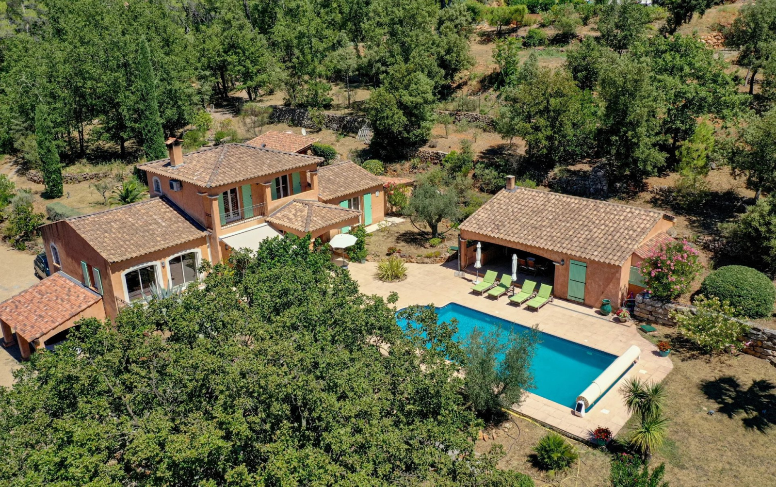 VENDUE PAR VOTRE AGENCE SOGIP ! Flayosc une superbe Propriété !!! cette villa dispose de 3 chambres et dépendances avec une 4ème chambre et salle d'eau indépendante, Piscine chauffée sur plus de 4 000 m² au grand calme avec superbe vue au sud. De plain-pied : Dégagement et placards, Superbe Pièce de vie de 64 m² avec cheminée, comprenant une cuisine ouverte équipée (avec cellier), un salon et une salle à manger. Accès direct aux grandes terrasses et à l'espace détente piscine et pool house. Une chambre de maître avec son dressing et sa salle de bain, le tout de 30m². A l'étage : 2 chambres avec placards et loggia, salle d'eau et wc. La villa est entièrement climatisée. Espace détente avec PISCINE chauffée de 10x5 mosaïque, Pool-house de 27 m² et la 4ième chambre indépendante avec sa salle d'eau et WC de 13 m². Nombreuses terrasses d'agrément. Terrain de Pétanque Pour les dépendances : garage carrelé de 42 m², cave à vin climatisée, cabanon en pierres de 19m² et abri voiture. Le terrain est superbe, de larges restanques, de superbes enrochements, éclairages extérieurs, plus de 4 000 m² planté d'espèces de la région. Une superbe affaire à Flayosc ! SOGIP l'agence historique du village depuis plus de 30 ans, Bruno et Caroline à votre écoute!