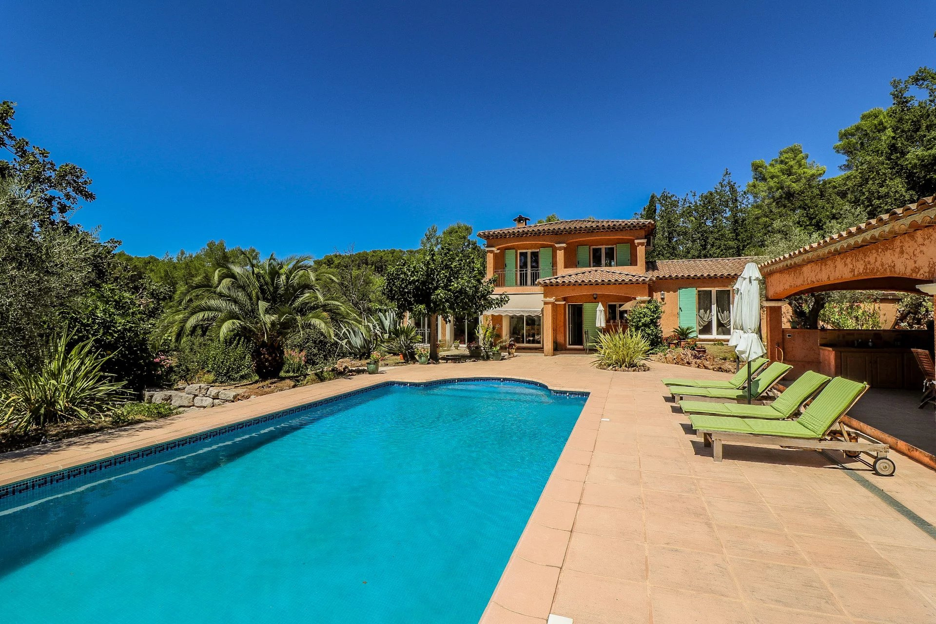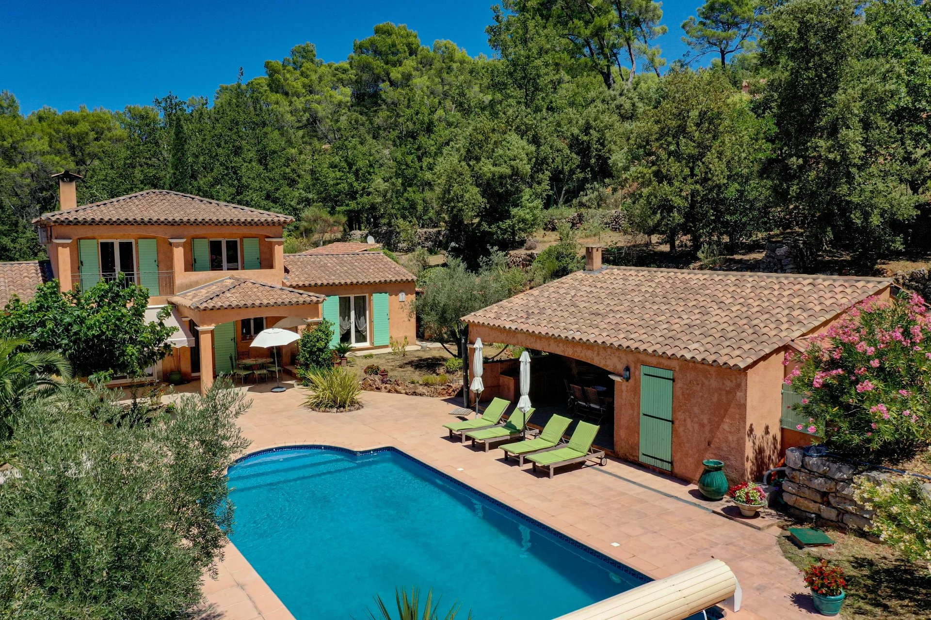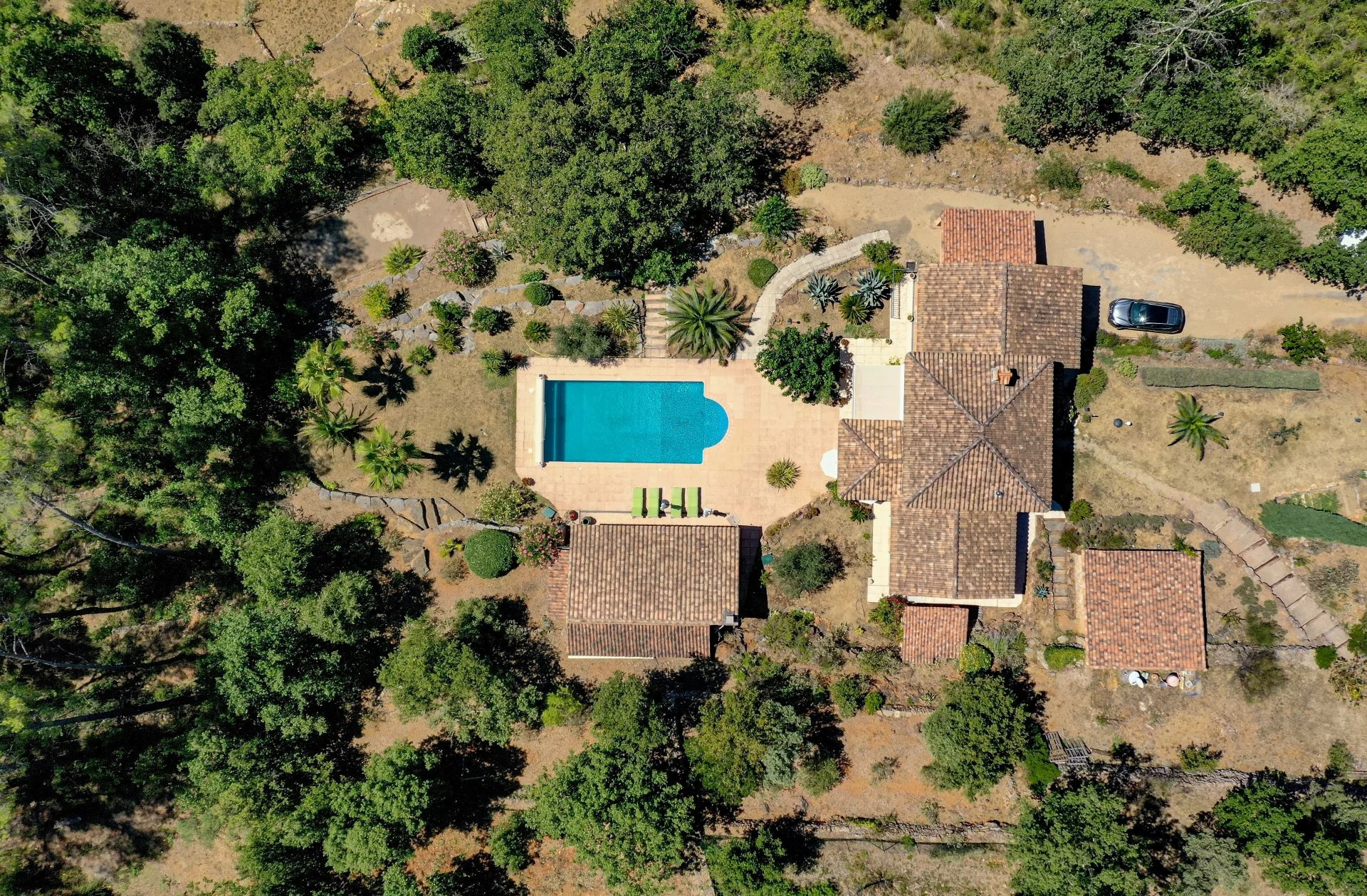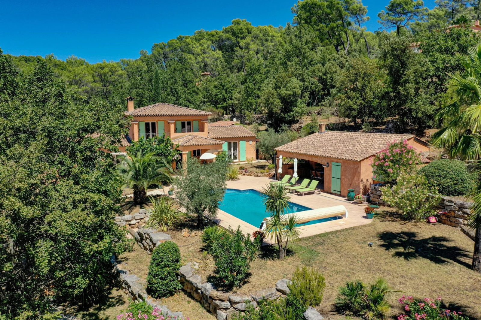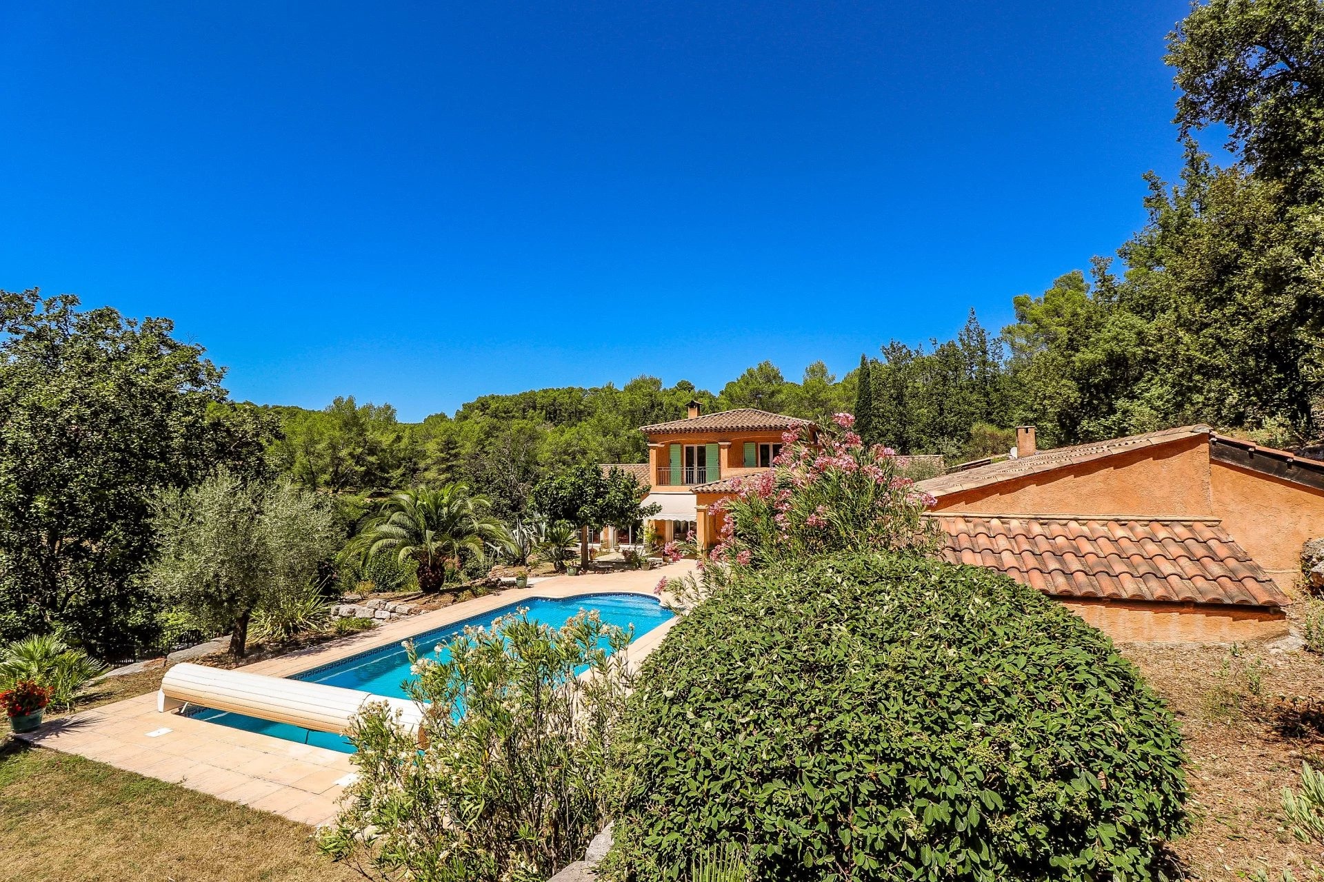VENDUE PAR VOTRE AGENCE SOGIP ! Flayosc une superbe Propriété !!! cette villa dispose de 3 chambres et dépendances avec une 4ème chambre et salle d'eau indépendante, Piscine chauffée sur plus de 4 000 m² au grand calme avec superbe vue au sud. De plain-pied : Dégagement et placards, Superbe Pièce de vie de 64 m² avec cheminée, comprenant une cuisine ouverte équipée (avec cellier), un salon et une salle à manger. Accès direct aux grandes terrasses et à l'espace détente piscine et pool house. Une chambre de maître avec son dressing et sa salle de bain, le tout de 30m². A l'étage : 2 chambres avec placards et loggia, salle d'eau et wc. La villa est entièrement climatisée. Espace détente avec PISCINE chauffée de 10x5 mosaïque, Pool-house de 27 m² et la 4ième chambre indépendante avec sa salle d'eau et WC de 13 m². Nombreuses terrasses d'agrément. Terrain de Pétanque Pour les dépendances : garage carrelé de 42 m², cave à vin climatisée, cabanon en pierres de 19m² et abri voiture. Le terrain est superbe, de larges restanques, de superbes enrochements, éclairages extérieurs, plus de 4 000 m² planté d'espèces de la région. Une superbe affaire à Flayosc ! SOGIP l'agence historique du village depuis plus de 30 ans, Bruno et Caroline à votre écoute!