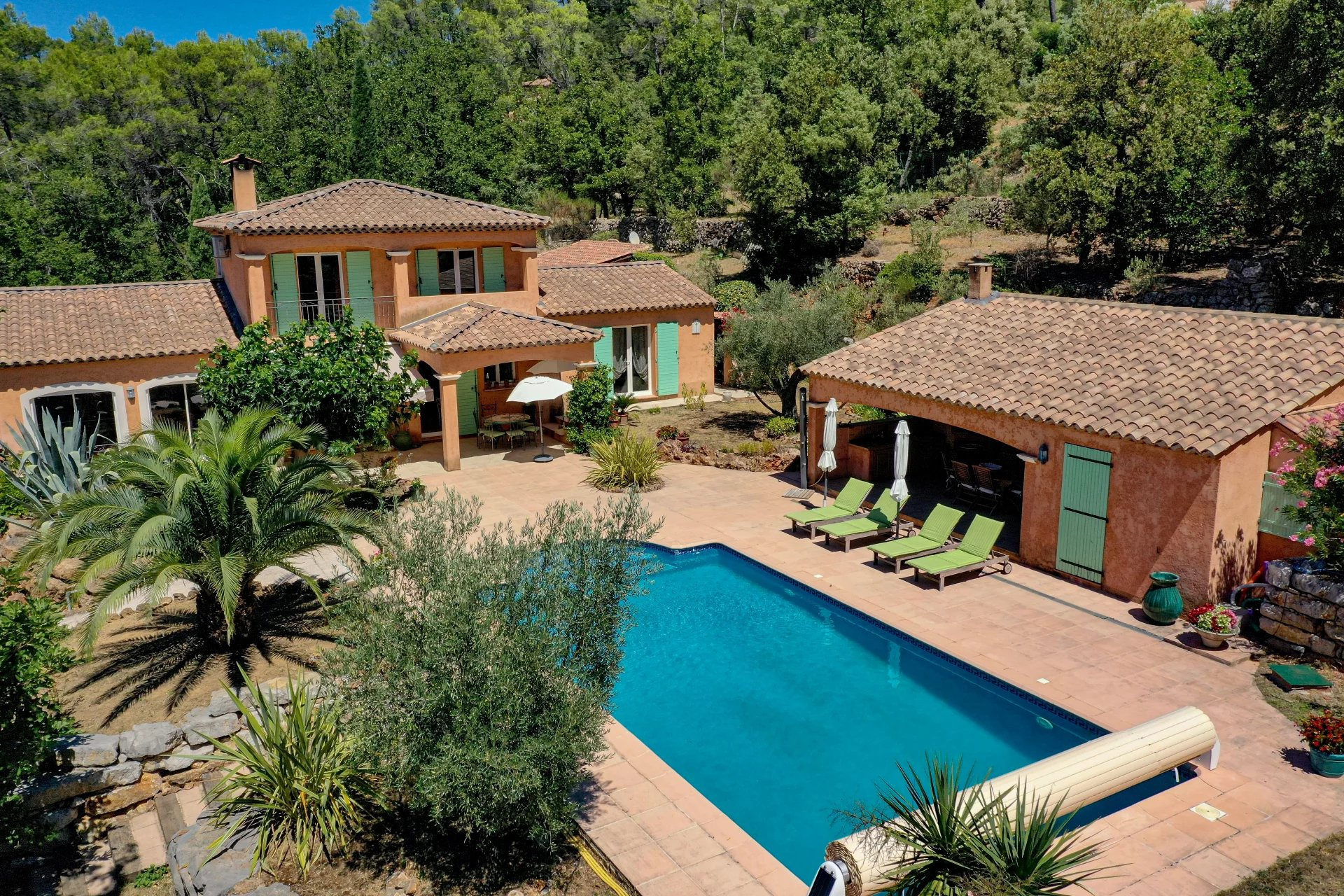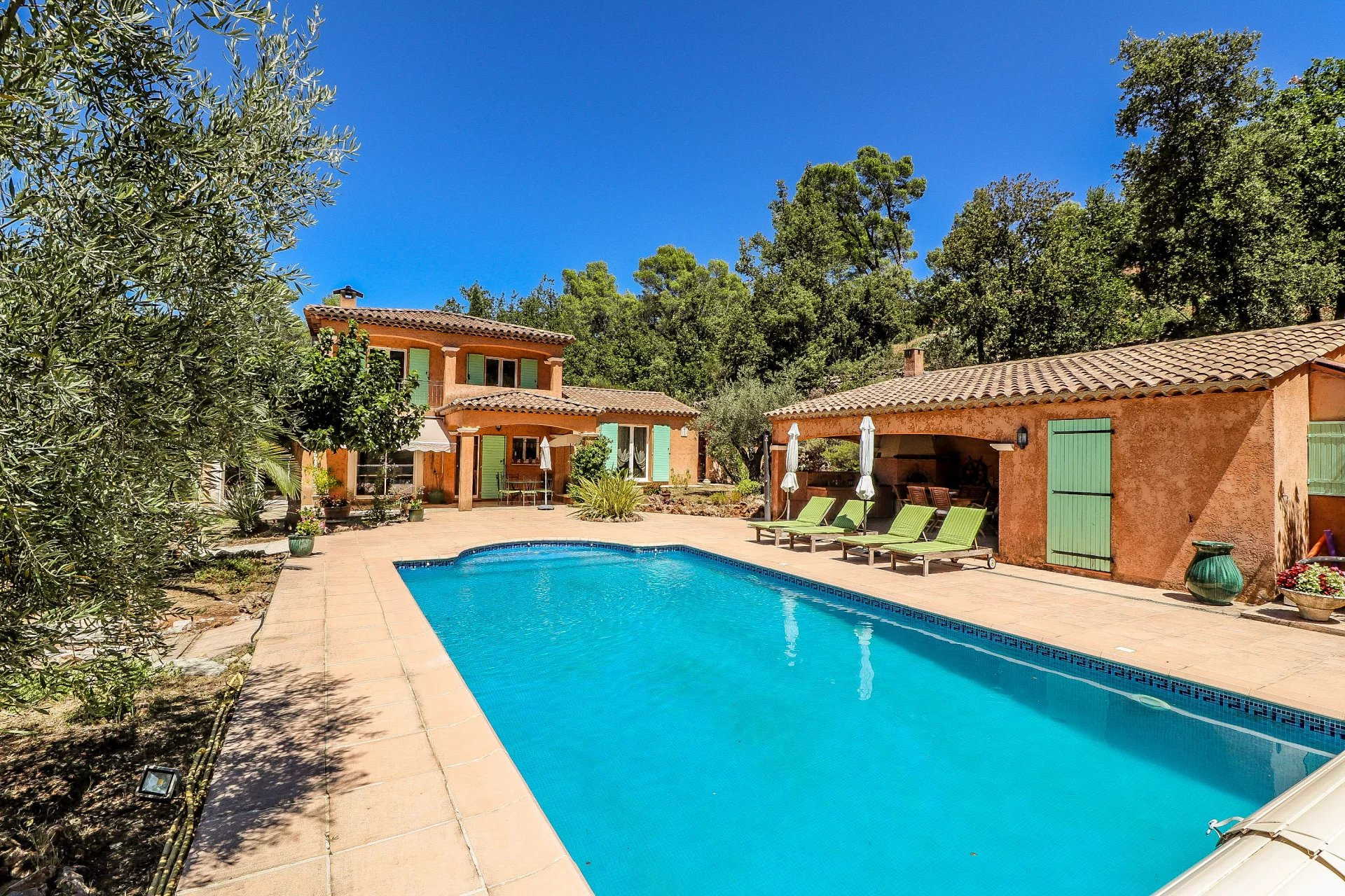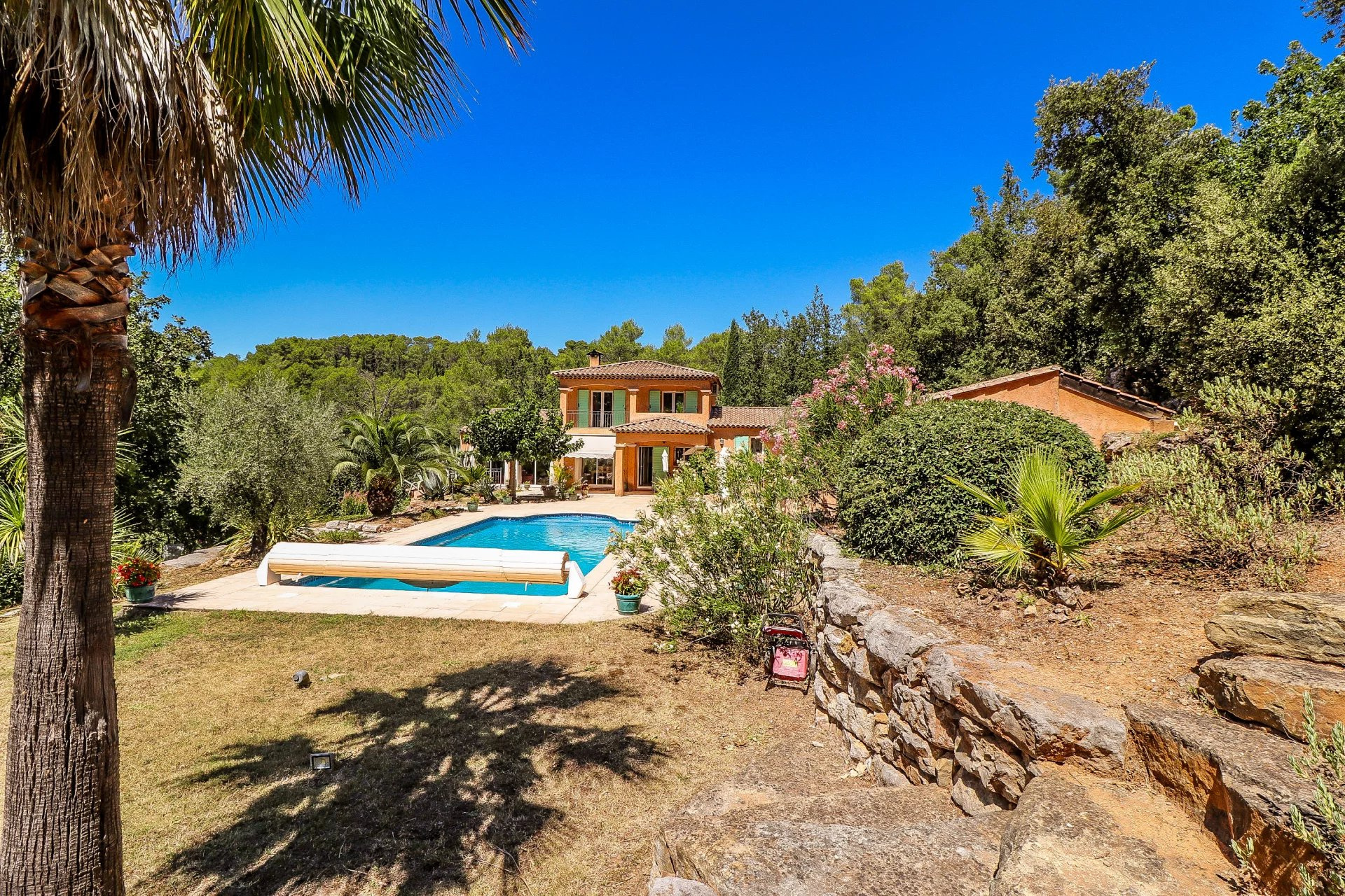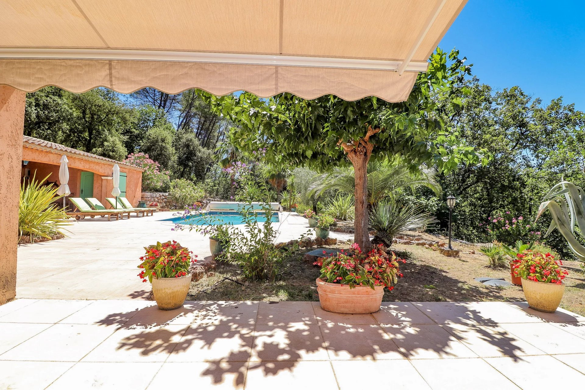 VENDUE PAR VOTRE AGENCE SOGIP ! Flayosc une superbe Propriété !!! cette villa dispose de 3 chambres et dépendances avec une 4ème chambre et salle d'eau indépendante, Piscine chauffée sur plus de 4 000 m² au grand calme avec superbe vue au sud. De plain-pied : Dégagement et placards, Superbe Pièce de vie de 64 m² avec cheminée, comprenant une cuisine ouverte équipée (avec cellier), un salon et une salle à manger. Accès direct aux grandes terrasses et à l'espace détente piscine et pool house. Une chambre de maître avec son dressing et sa salle de bain, le tout de 30m². A l'étage : 2 chambres avec placards et loggia, salle d'eau et wc. La villa est entièrement climatisée. Espace détente avec PISCINE chauffée de 10x5 mosaïque, Pool-house de 27 m² et la 4ième chambre indépendante avec sa salle d'eau et WC de 13 m². Nombreuses terrasses d'agrément. Terrain de Pétanque Pour les dépendances : garage carrelé de 42 m², cave à vin climatisée, cabanon en pierres de 19m² et abri voiture. Le terrain est superbe, de larges restanques, de superbes enrochements, éclairages extérieurs, plus de 4 000 m² planté d'espèces de la région. Une superbe affaire à Flayosc ! SOGIP l'agence historique du village depuis plus de 30 ans, Bruno et Caroline à votre écoute!