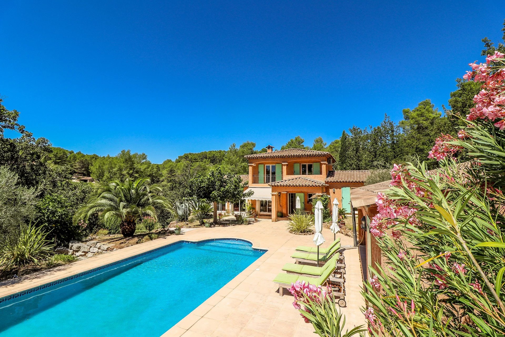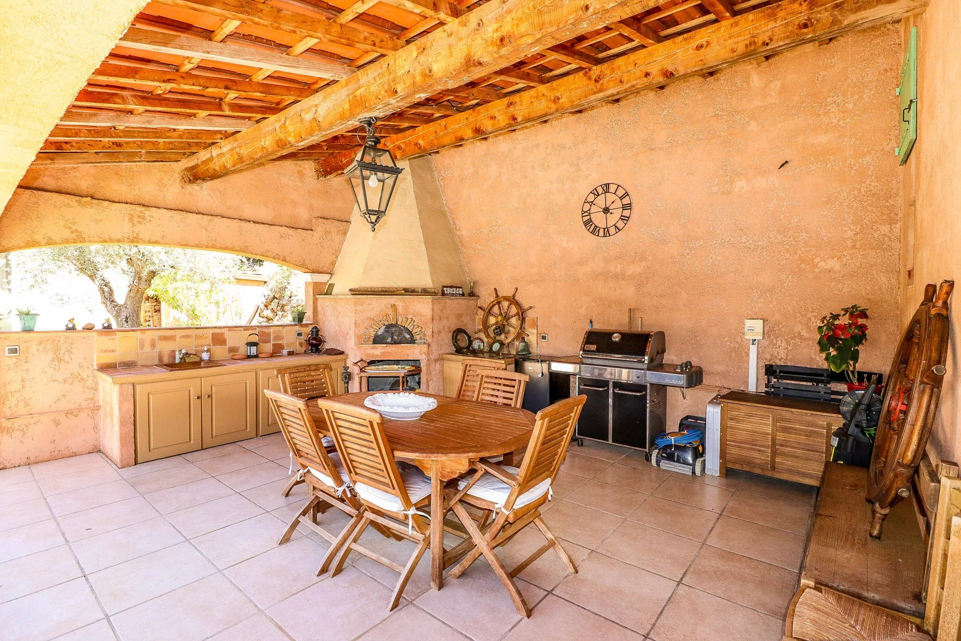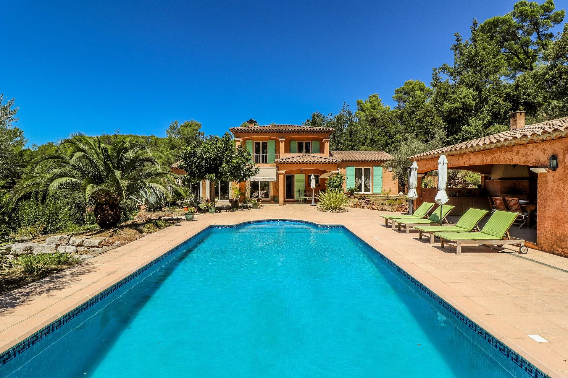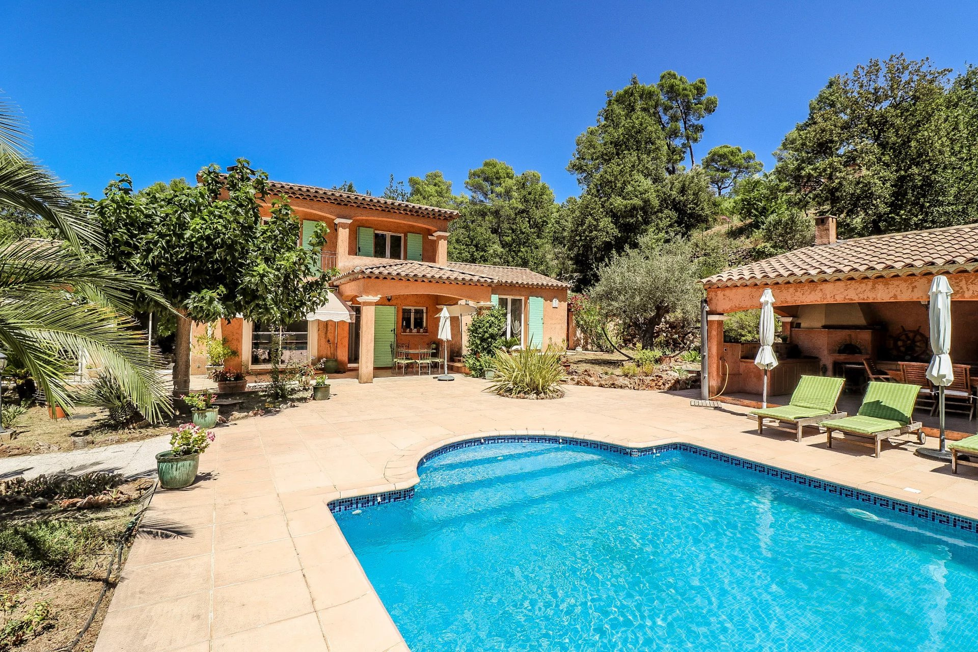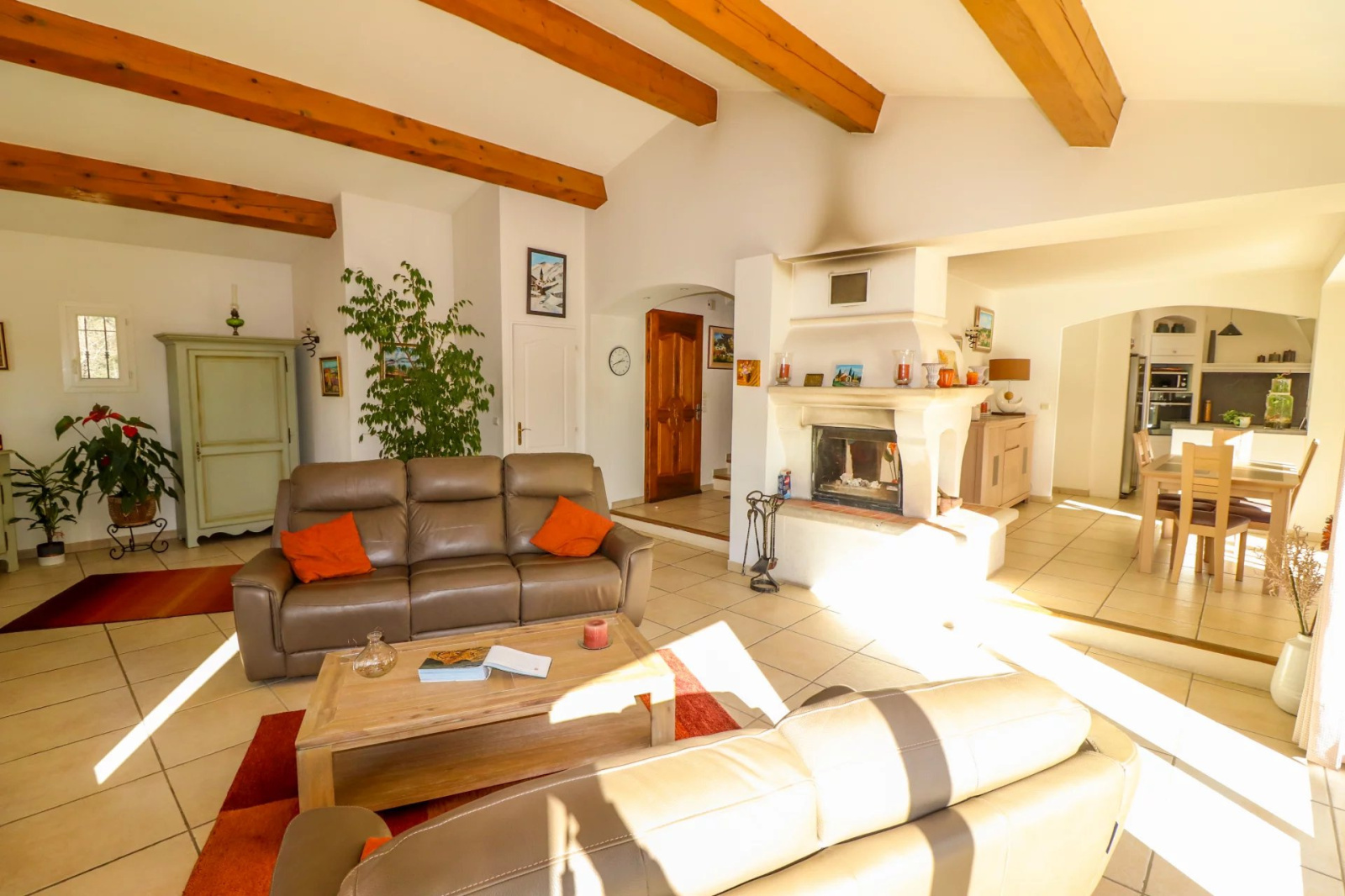 VENDUE PAR VOTRE AGENCE SOGIP ! Flayosc une superbe Propriété !!! cette villa dispose de 3 chambres et dépendances avec une 4ème chambre et salle d'eau indépendante, Piscine chauffée sur plus de 4 000 m² au grand calme avec superbe vue au sud. De plain-pied : Dégagement et placards, Superbe Pièce de vie de 64 m² avec cheminée, comprenant une cuisine ouverte équipée (avec cellier), un salon et une salle à manger. Accès direct aux grandes terrasses et à l'espace détente piscine et pool house. Une chambre de maître avec son dressing et sa salle de bain, le tout de 30m². A l'étage : 2 chambres avec placards et loggia, salle d'eau et wc. La villa est entièrement climatisée. Espace détente avec PISCINE chauffée de 10x5 mosaïque, Pool-house de 27 m² et la 4ième chambre indépendante avec sa salle d'eau et WC de 13 m². Nombreuses terrasses d'agrément. Terrain de Pétanque Pour les dépendances : garage carrelé de 42 m², cave à vin climatisée, cabanon en pierres de 19m² et abri voiture. Le terrain est superbe, de larges restanques, de superbes enrochements, éclairages extérieurs, plus de 4 000 m² planté d'espèces de la région. Une superbe affaire à Flayosc ! SOGIP l'agence historique du village depuis plus de 30 ans, Bruno et Caroline à votre écoute!