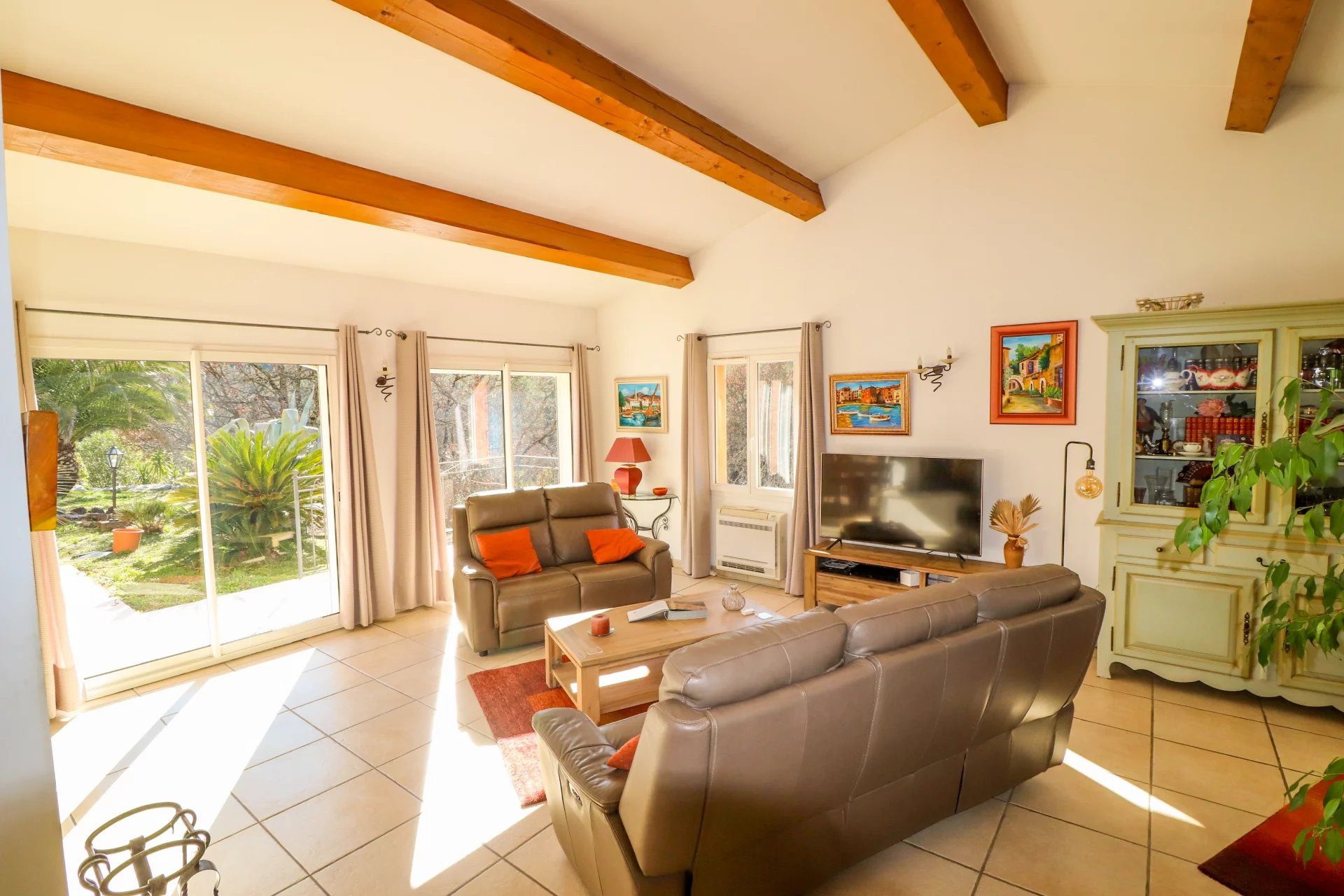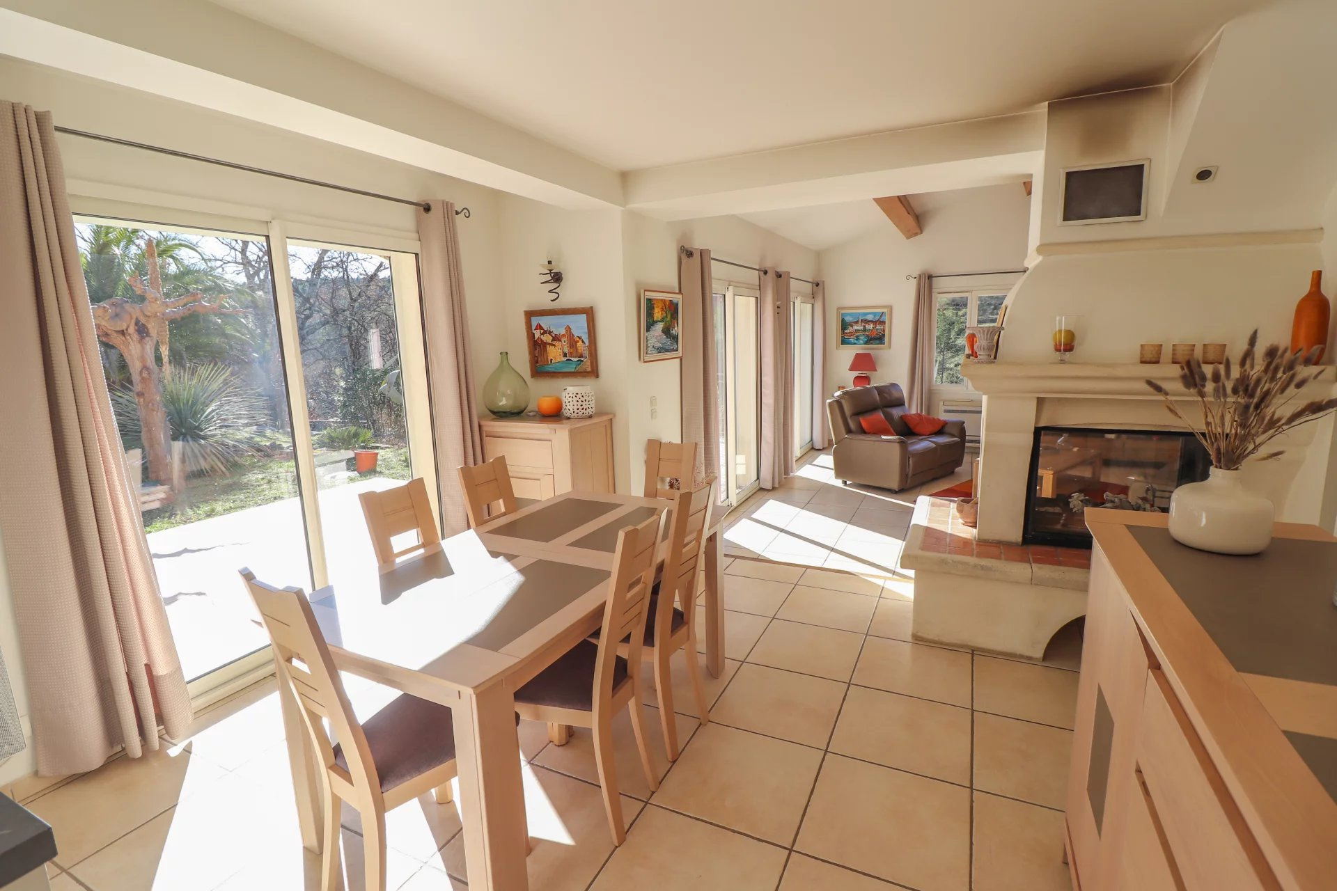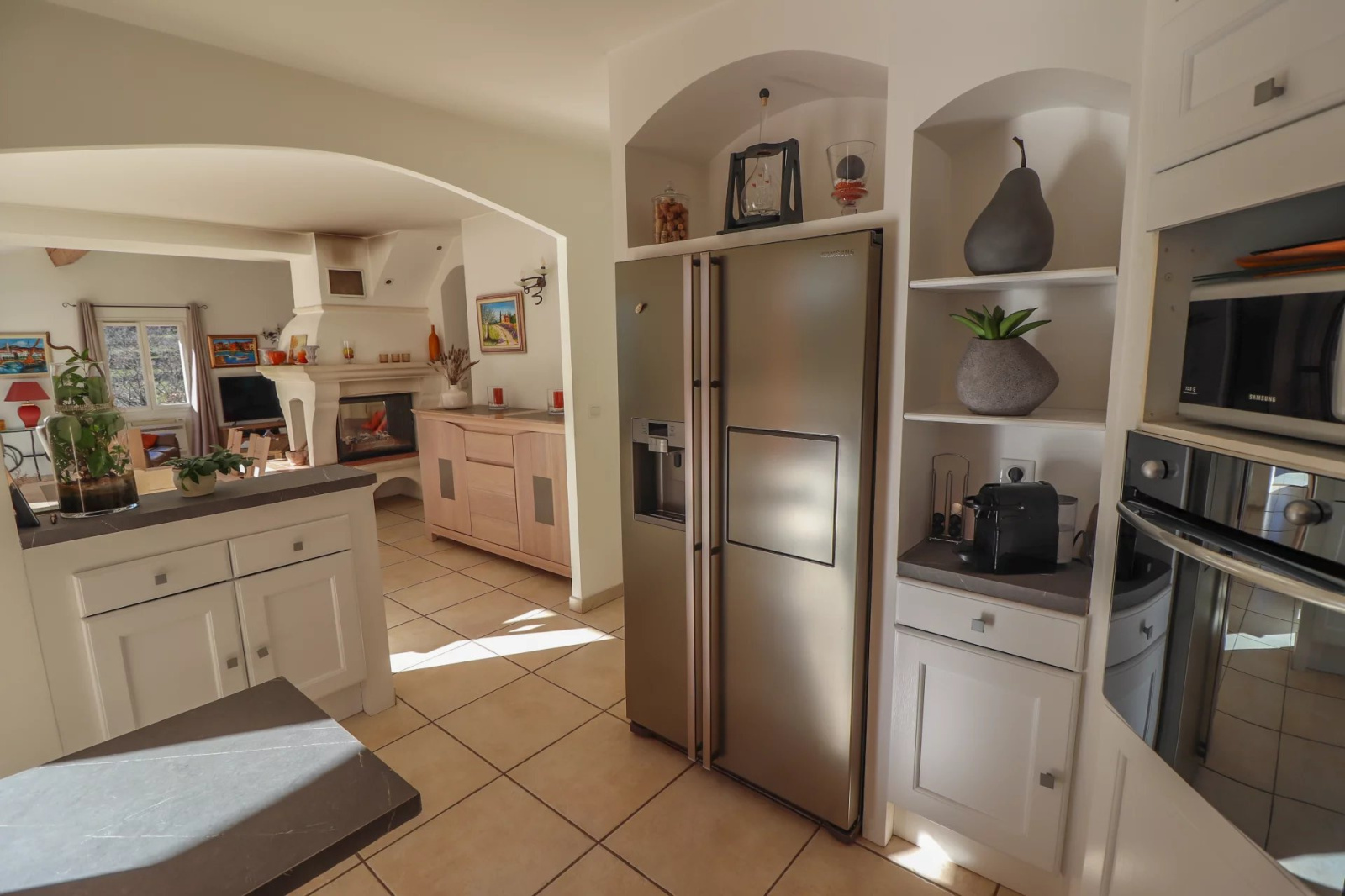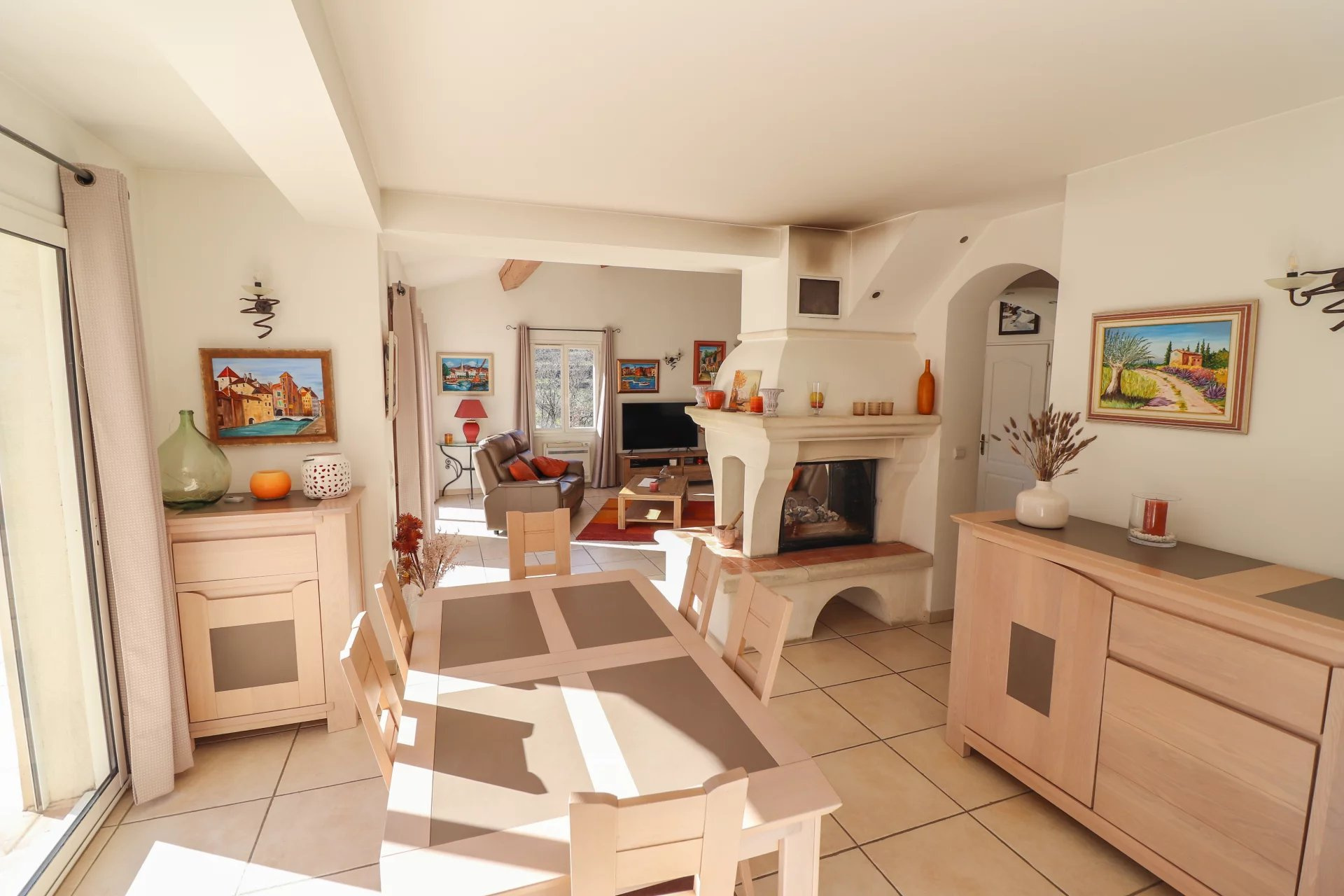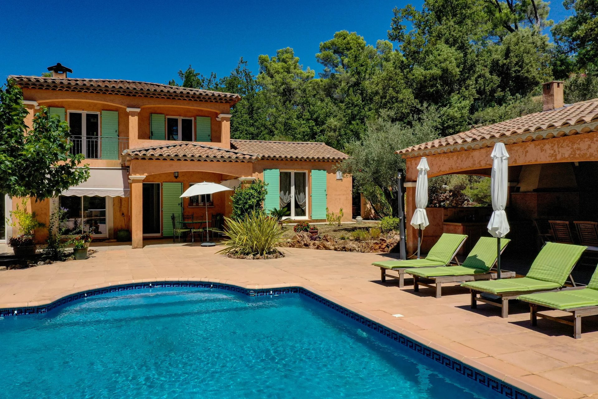 VENDUE PAR VOTRE AGENCE SOGIP ! Flayosc une superbe Propriété !!! cette villa dispose de 3 chambres et dépendances avec une 4ème chambre et salle d'eau indépendante, Piscine chauffée sur plus de 4 000 m² au grand calme avec superbe vue au sud. De plain-pied : Dégagement et placards, Superbe Pièce de vie de 64 m² avec cheminée, comprenant une cuisine ouverte équipée (avec cellier), un salon et une salle à manger. Accès direct aux grandes terrasses et à l'espace détente piscine et pool house. Une chambre de maître avec son dressing et sa salle de bain, le tout de 30m². A l'étage : 2 chambres avec placards et loggia, salle d'eau et wc. La villa est entièrement climatisée. Espace détente avec PISCINE chauffée de 10x5 mosaïque, Pool-house de 27 m² et la 4ième chambre indépendante avec sa salle d'eau et WC de 13 m². Nombreuses terrasses d'agrément. Terrain de Pétanque Pour les dépendances : garage carrelé de 42 m², cave à vin climatisée, cabanon en pierres de 19m² et abri voiture. Le terrain est superbe, de larges restanques, de superbes enrochements, éclairages extérieurs, plus de 4 000 m² planté d'espèces de la région. Une superbe affaire à Flayosc ! SOGIP l'agence historique du village depuis plus de 30 ans, Bruno et Caroline à votre écoute!