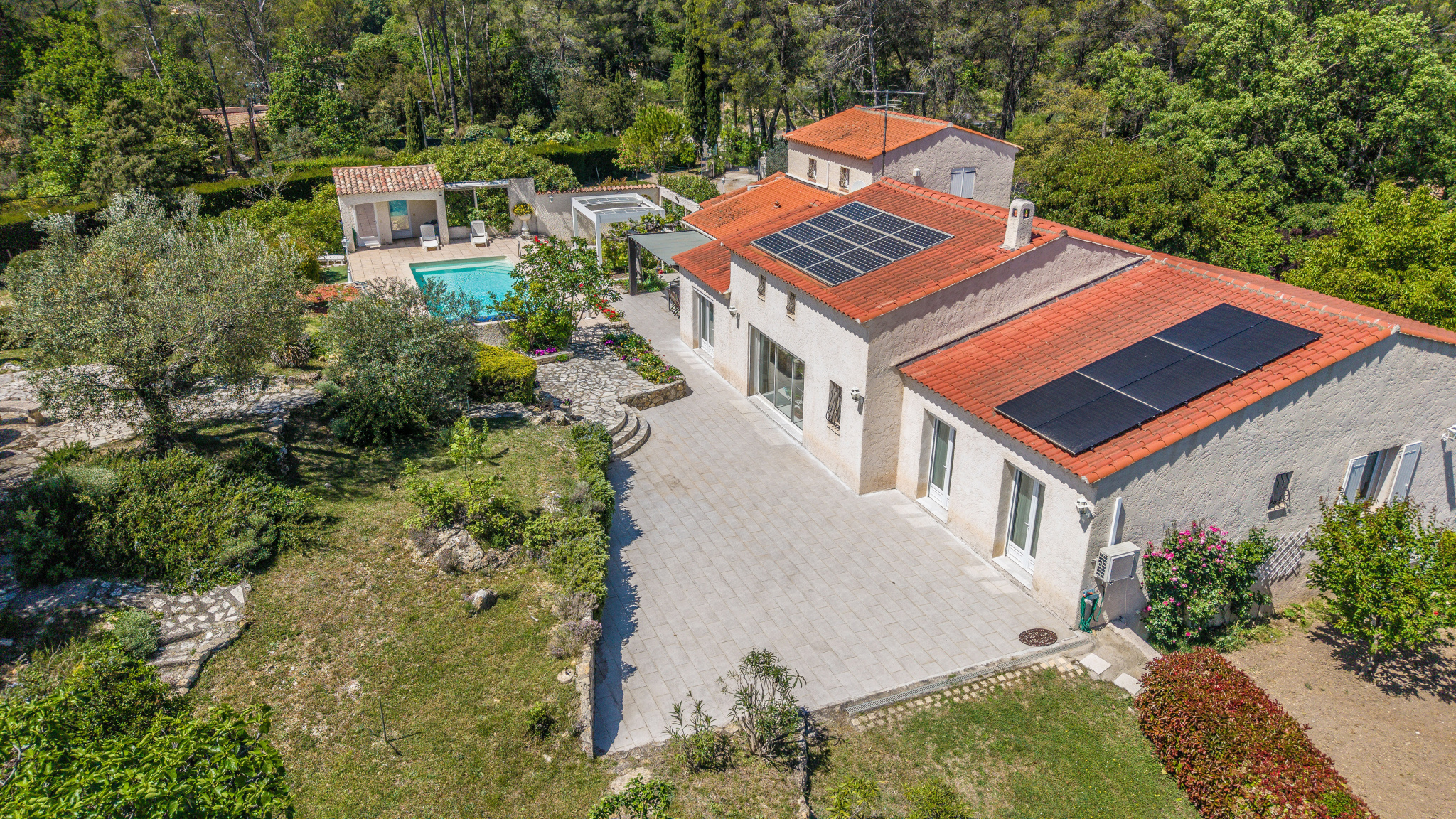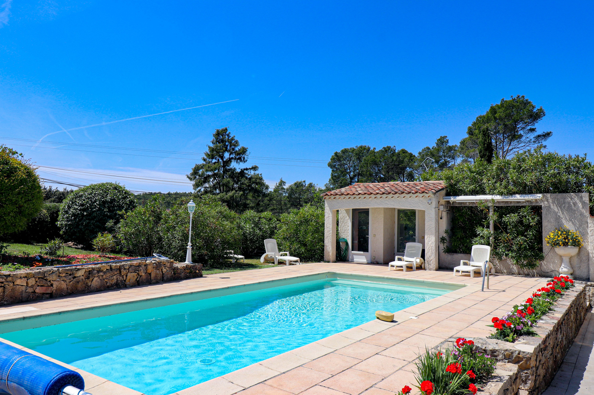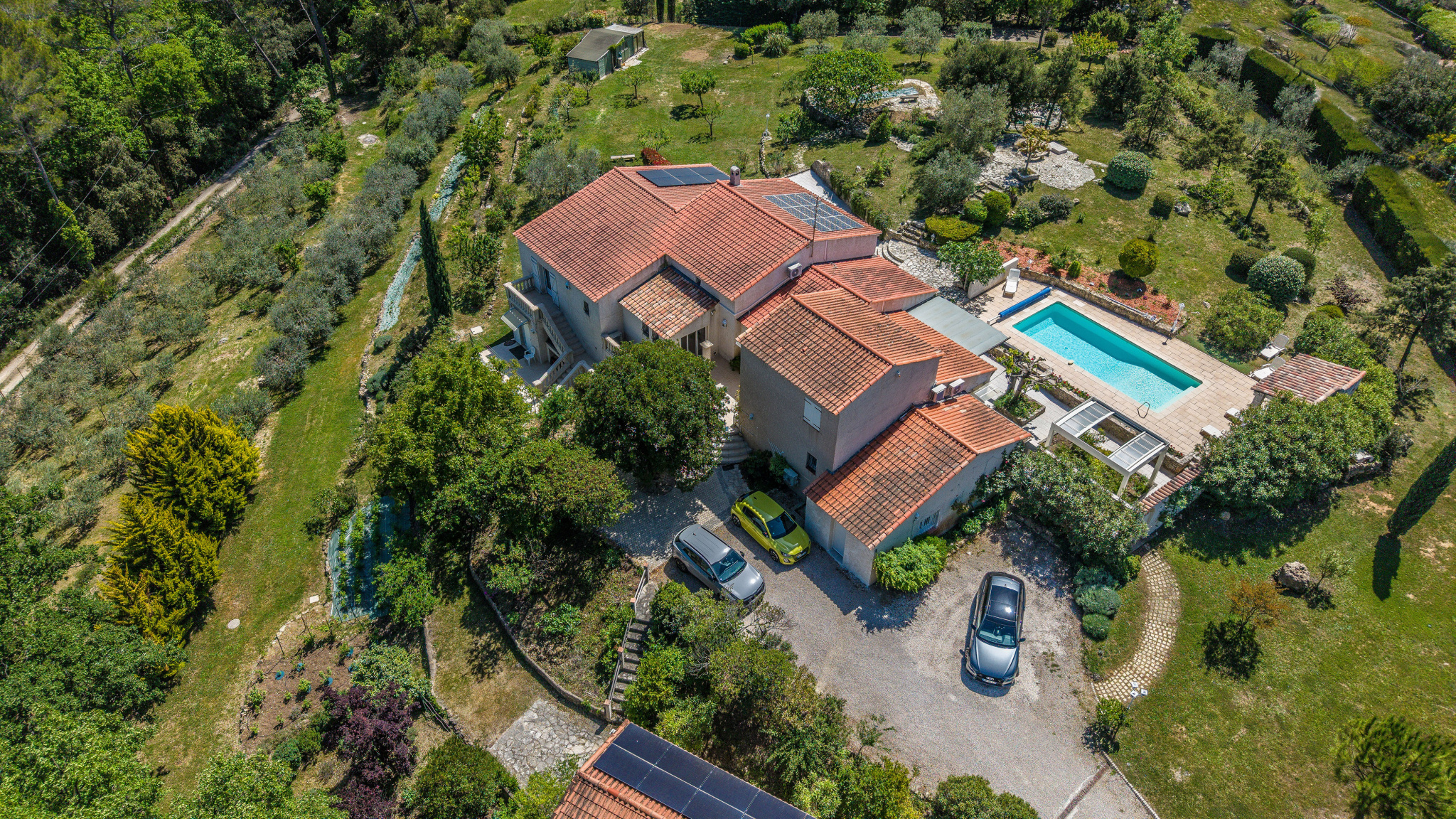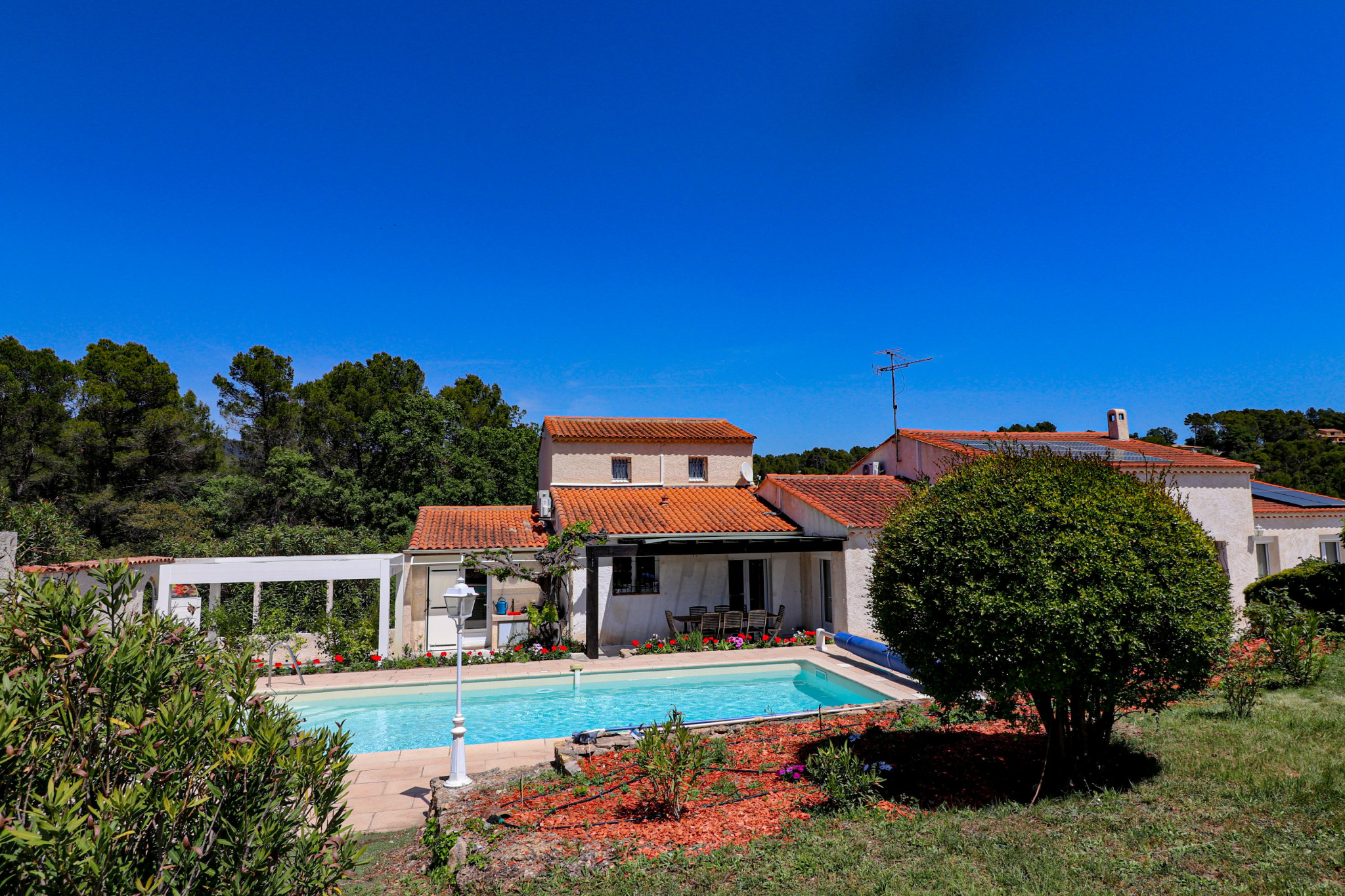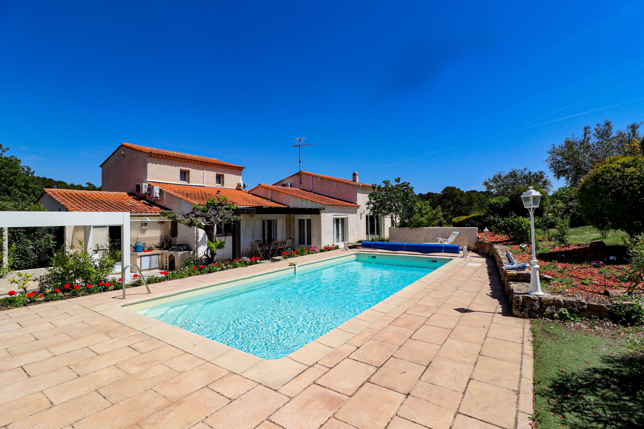 EN EXCLUSIVITE SOGIP. FLAYOSC. A environ 4 km du centre village, vaste propriété de 286m² avec ses 5 chambres, son studio indépendant, garage, sous sol avec cave , atelier, buanderie et salle de sport sur un terrain clos de 8780m² avec piscine 9*4.