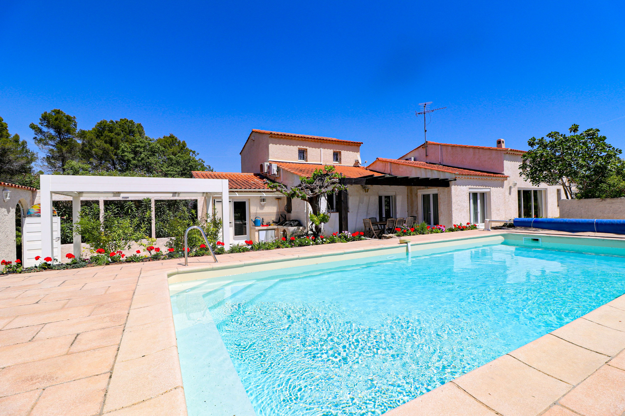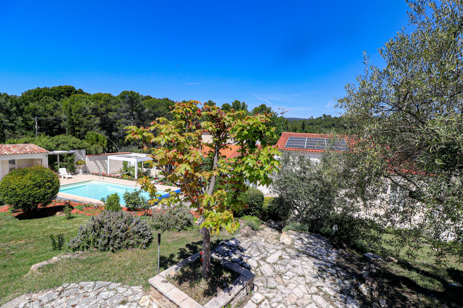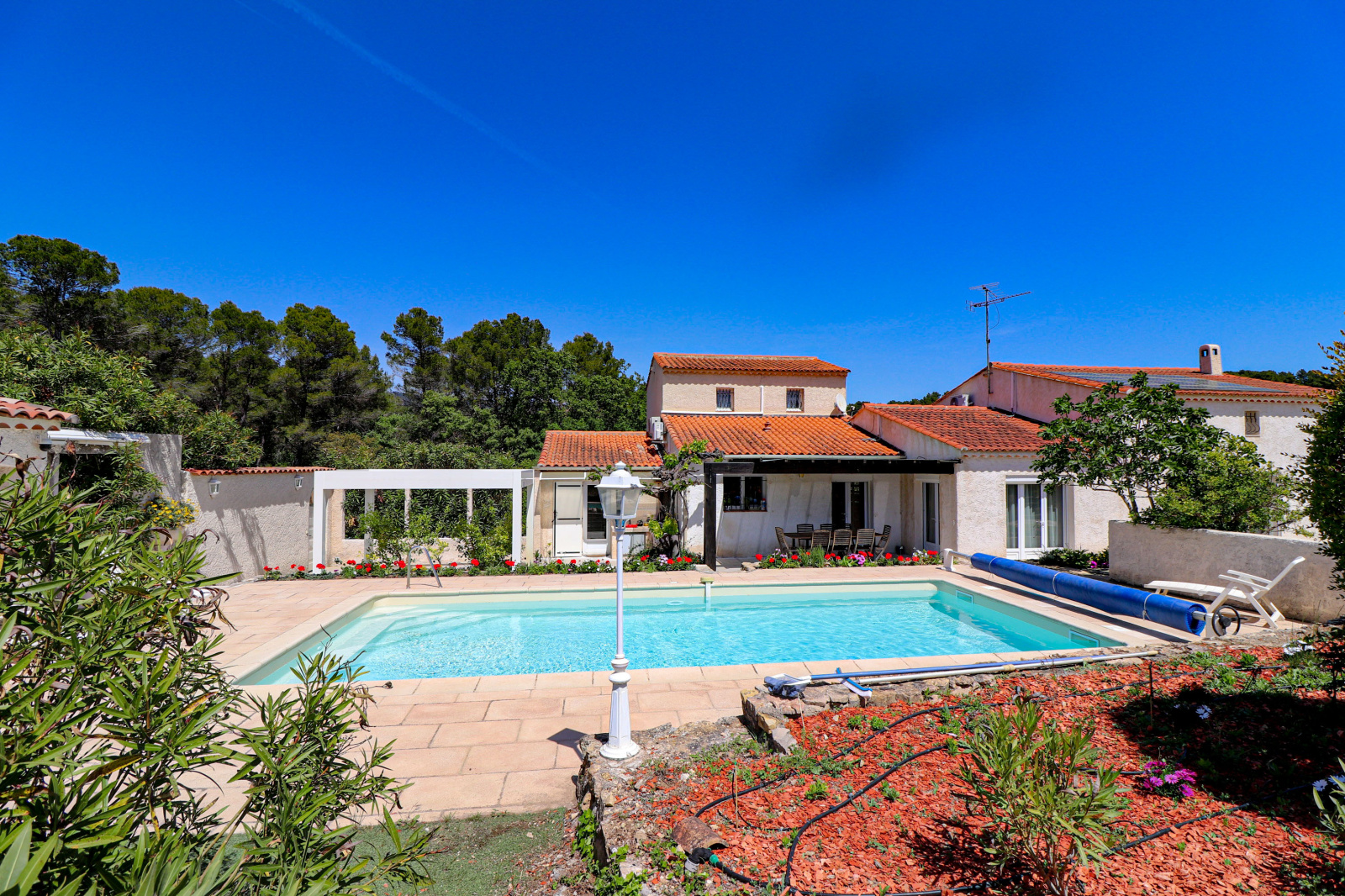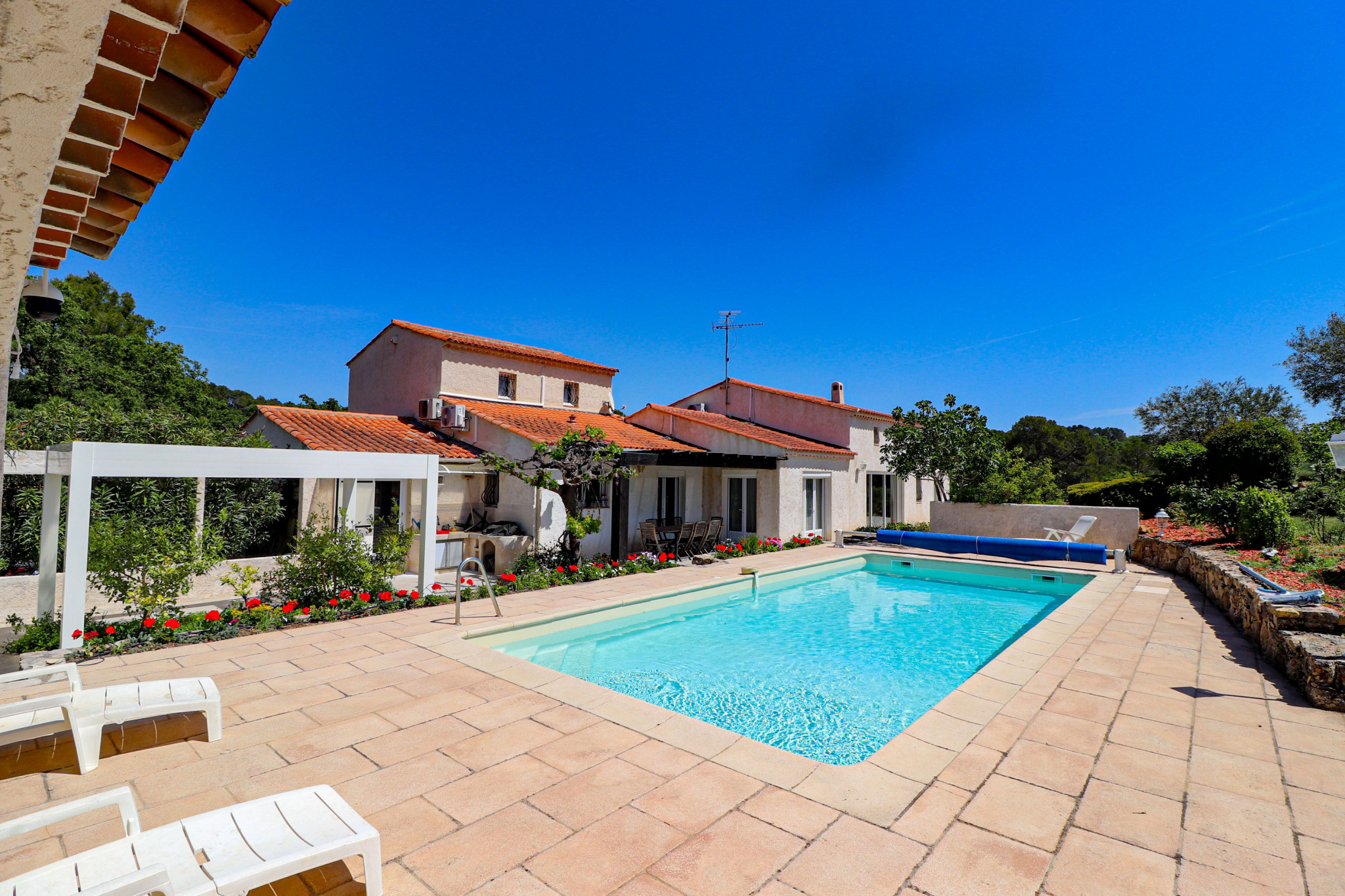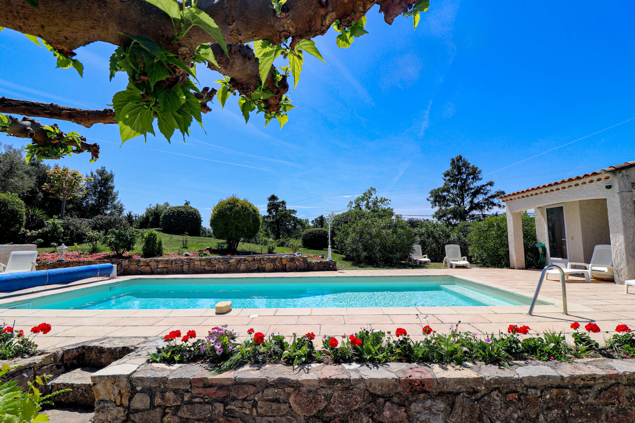 EN EXCLUSIVITE SOGIP. FLAYOSC. A environ 4 km du centre village, vaste propriété de 286m² avec ses 5 chambres, son studio indépendant, garage, sous sol avec cave , atelier, buanderie et salle de sport sur un terrain clos de 8780m² avec piscine 9*4.