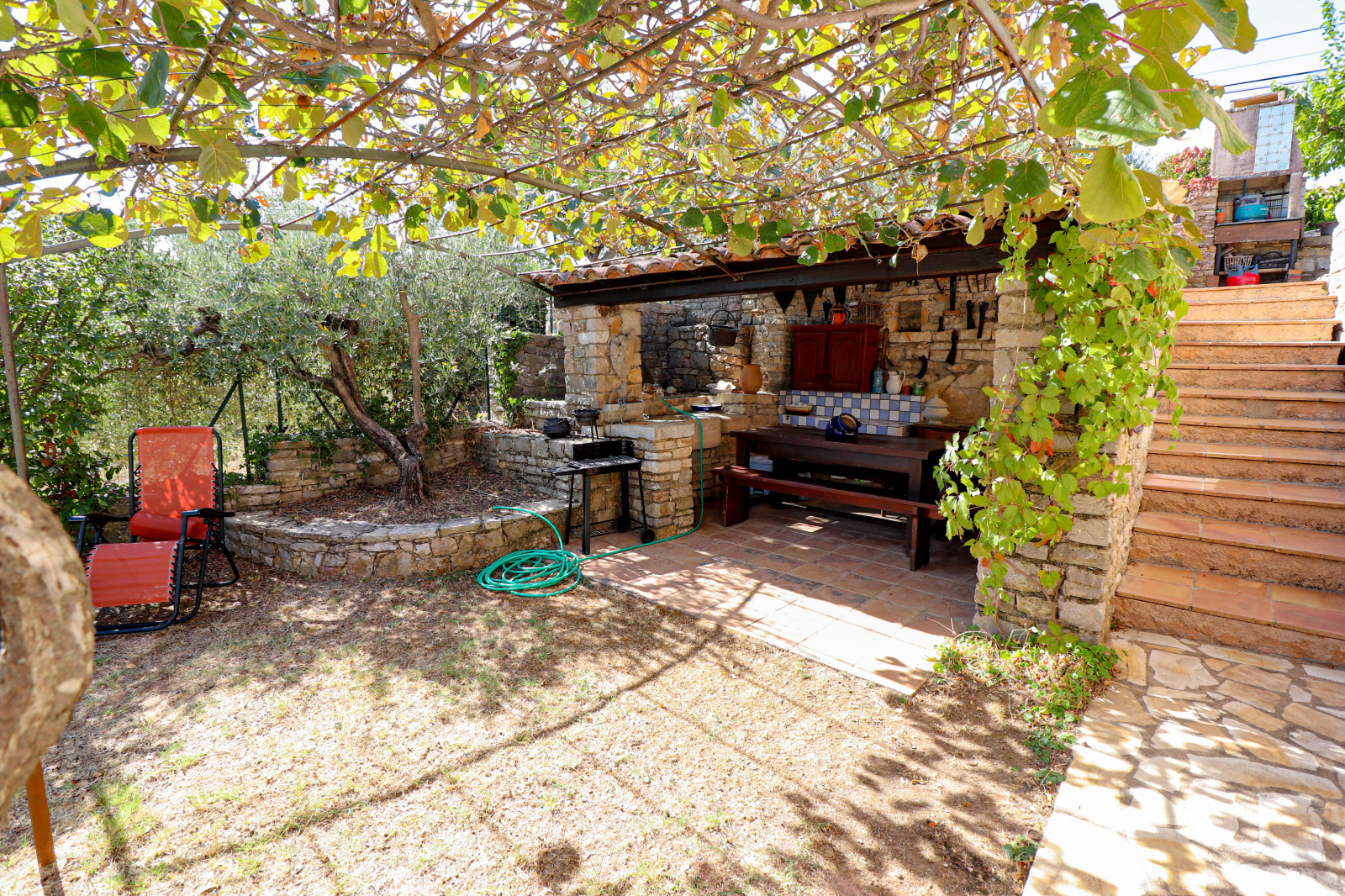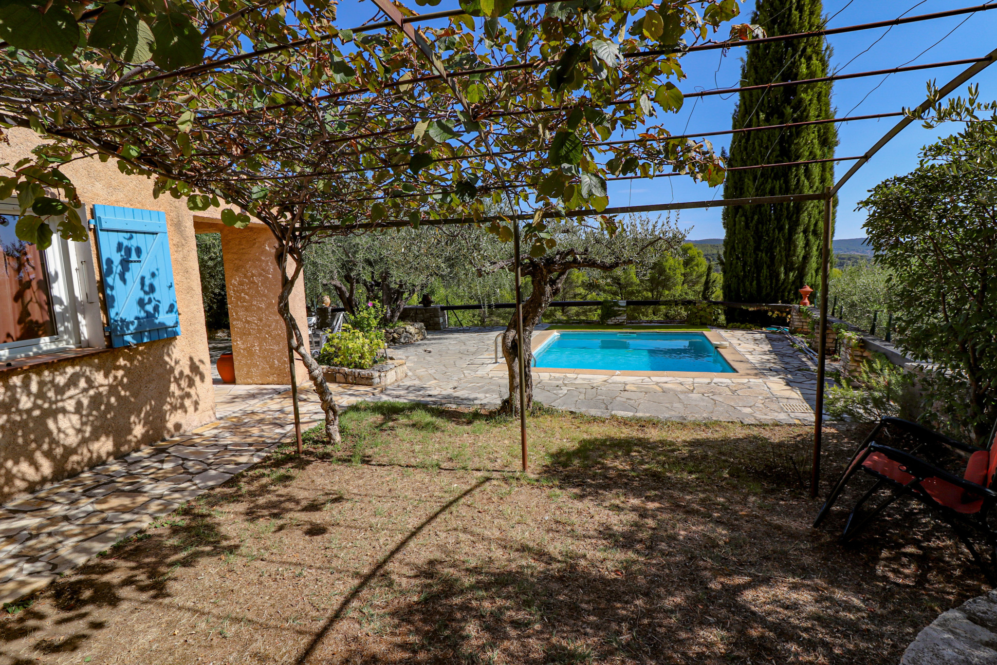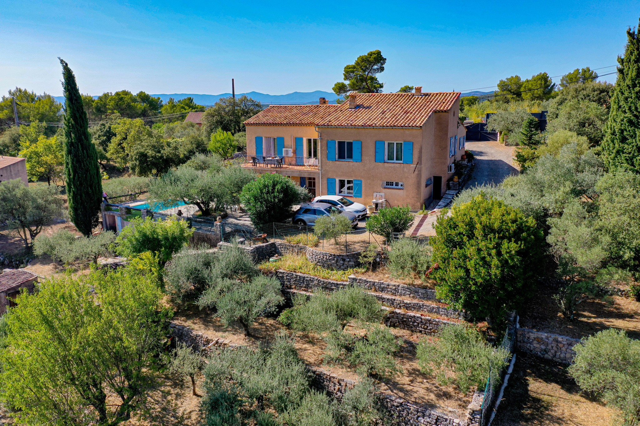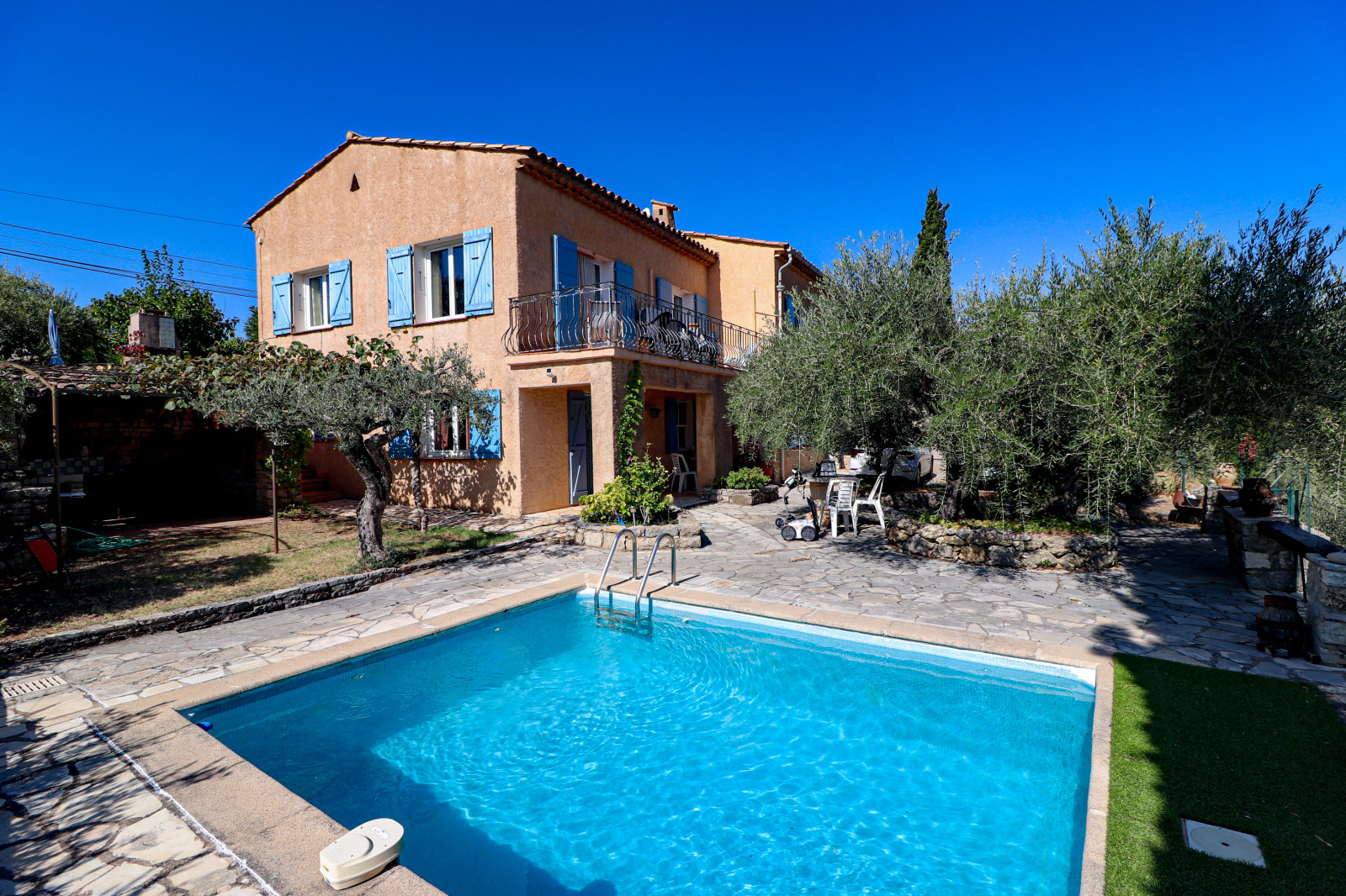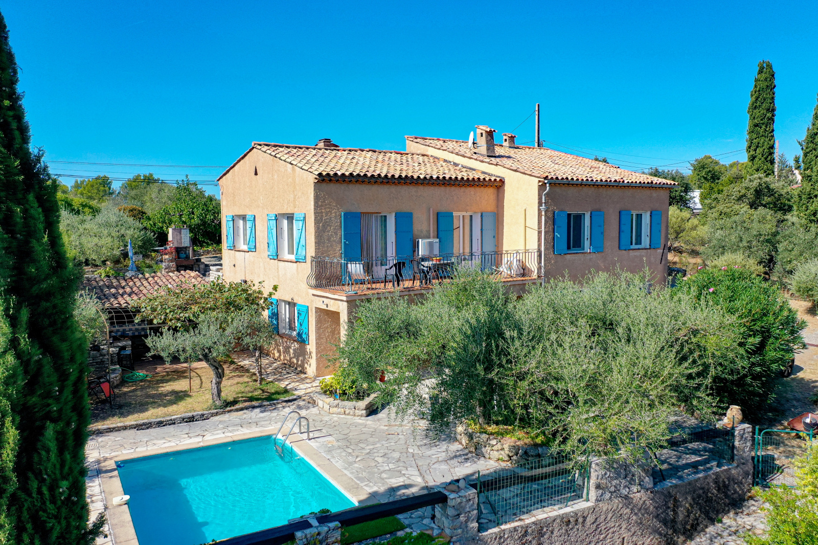 Le terrain de 1448m² est planté de nombreux oliviers. Piscine 4*3. Portail automatique.
