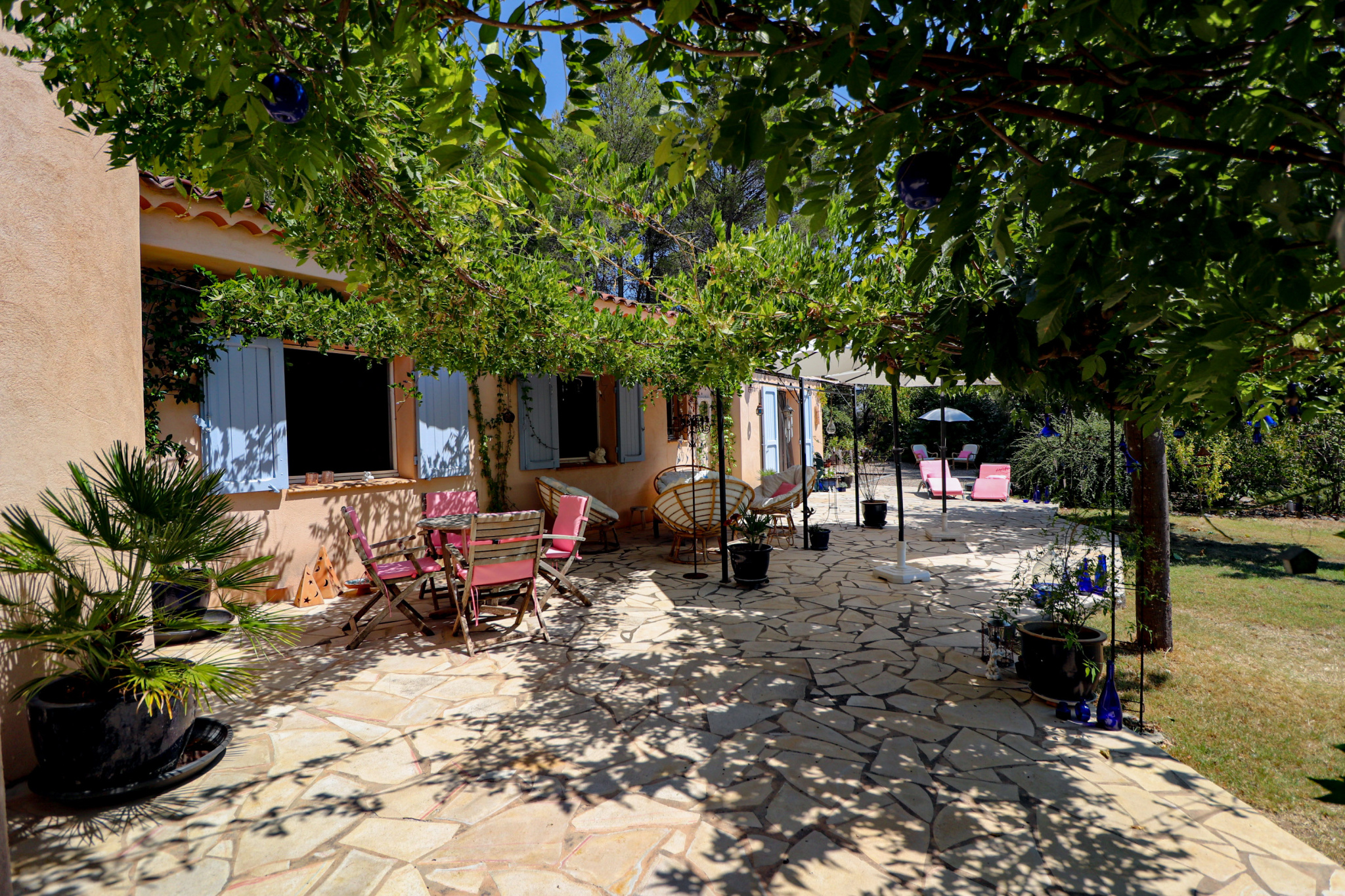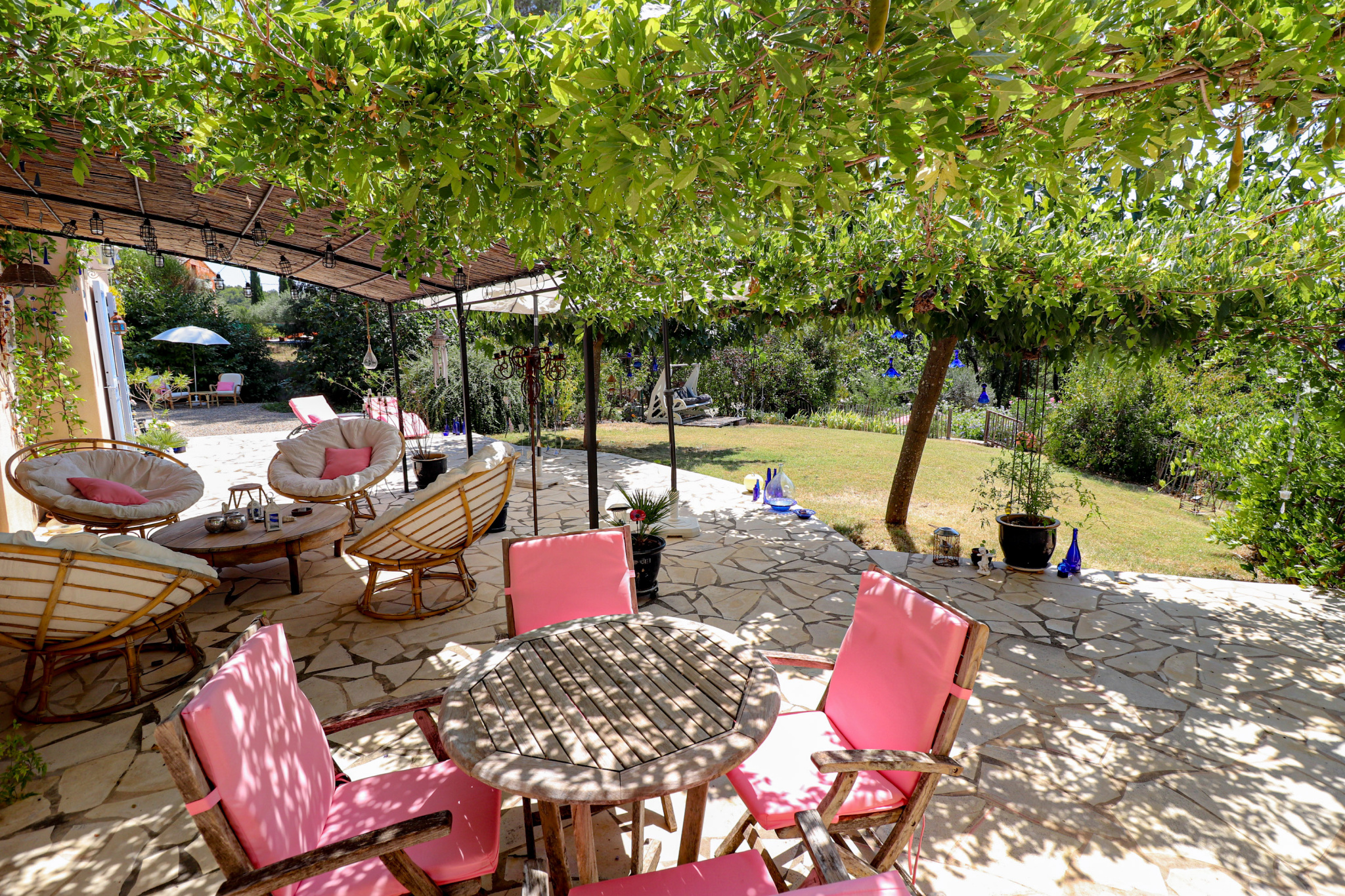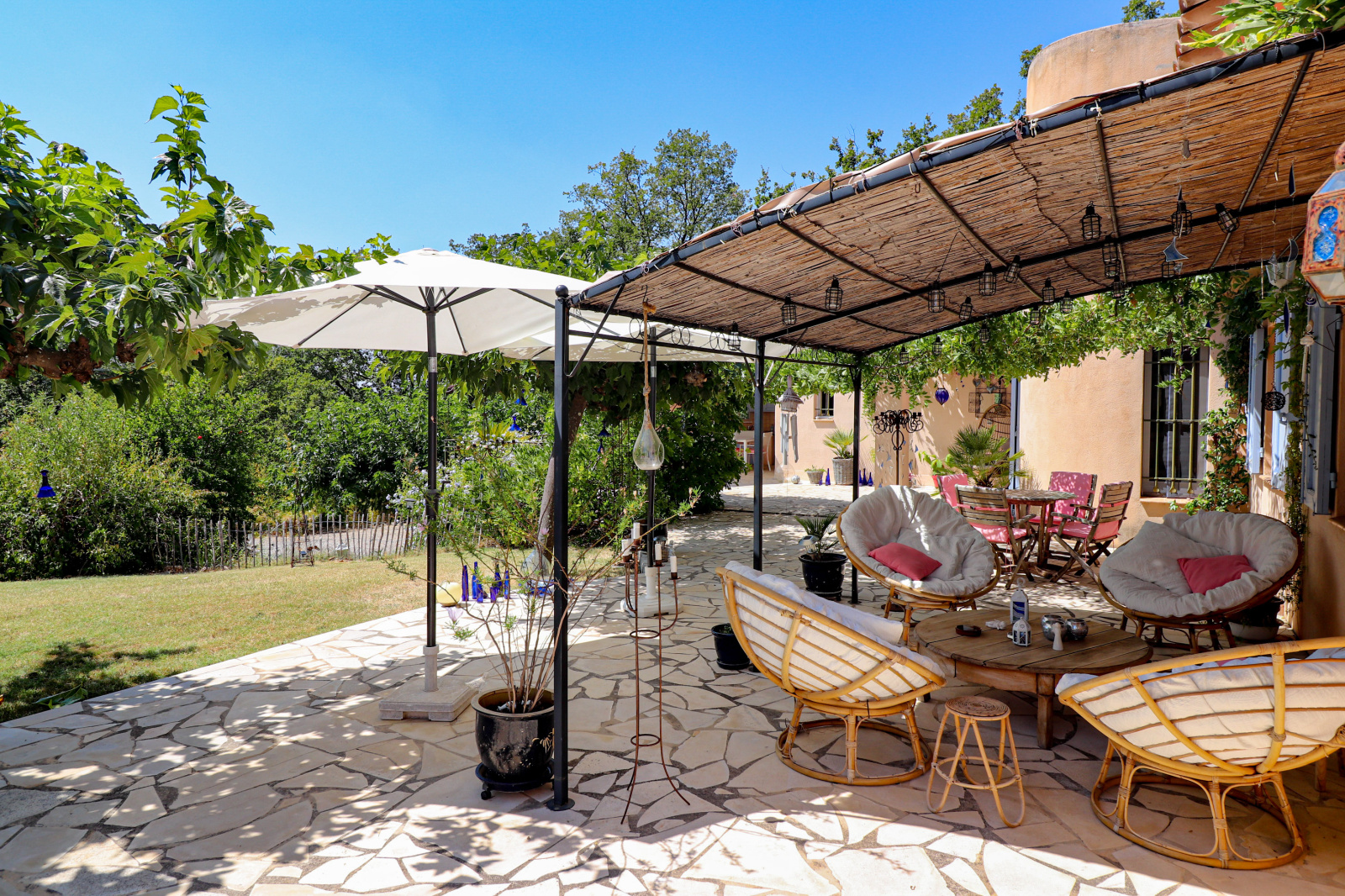 VENDU ! En exclusivité SOGIP une superbe propriété sur 4000m² de terrain clos et paysager, environnement Campagne et résidentiel au Grand Calme. La villa est composée d'une superbe pièce de vie de 60m²avec cheminée insert, climatisation réversible et sa cuisine ouverte équipée. cette pièce de vie est ouverte sur les terrasses, les pergolas, les tonnelles ombragées, la cuisine d'été avec son four à pizzas, le jardin et l'accès à la piscine.