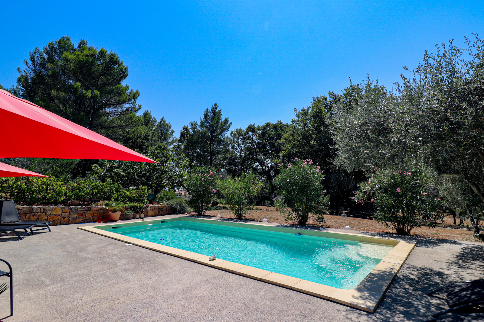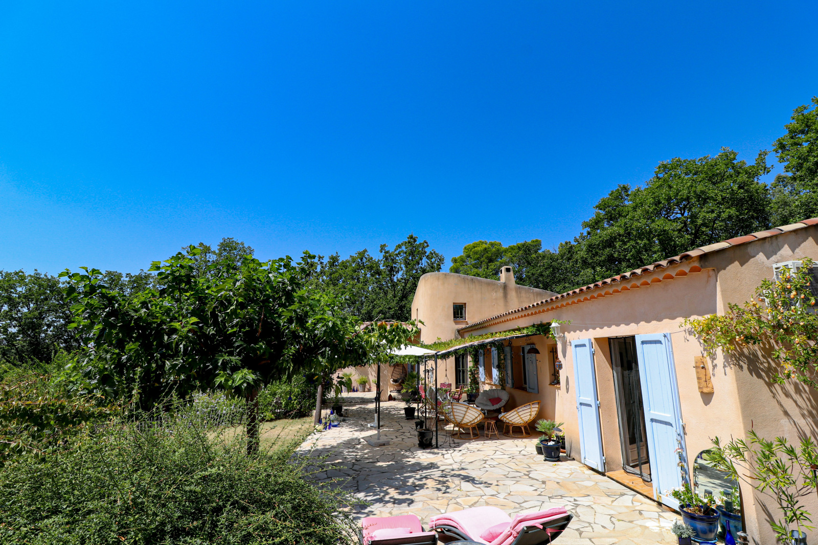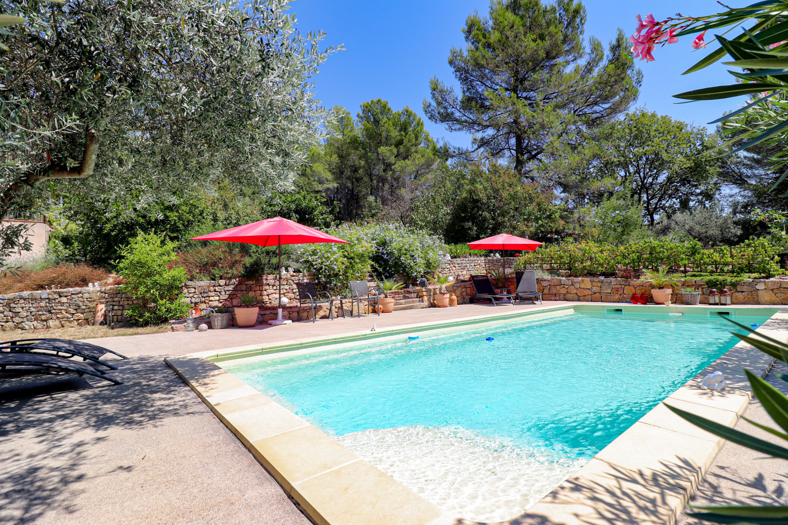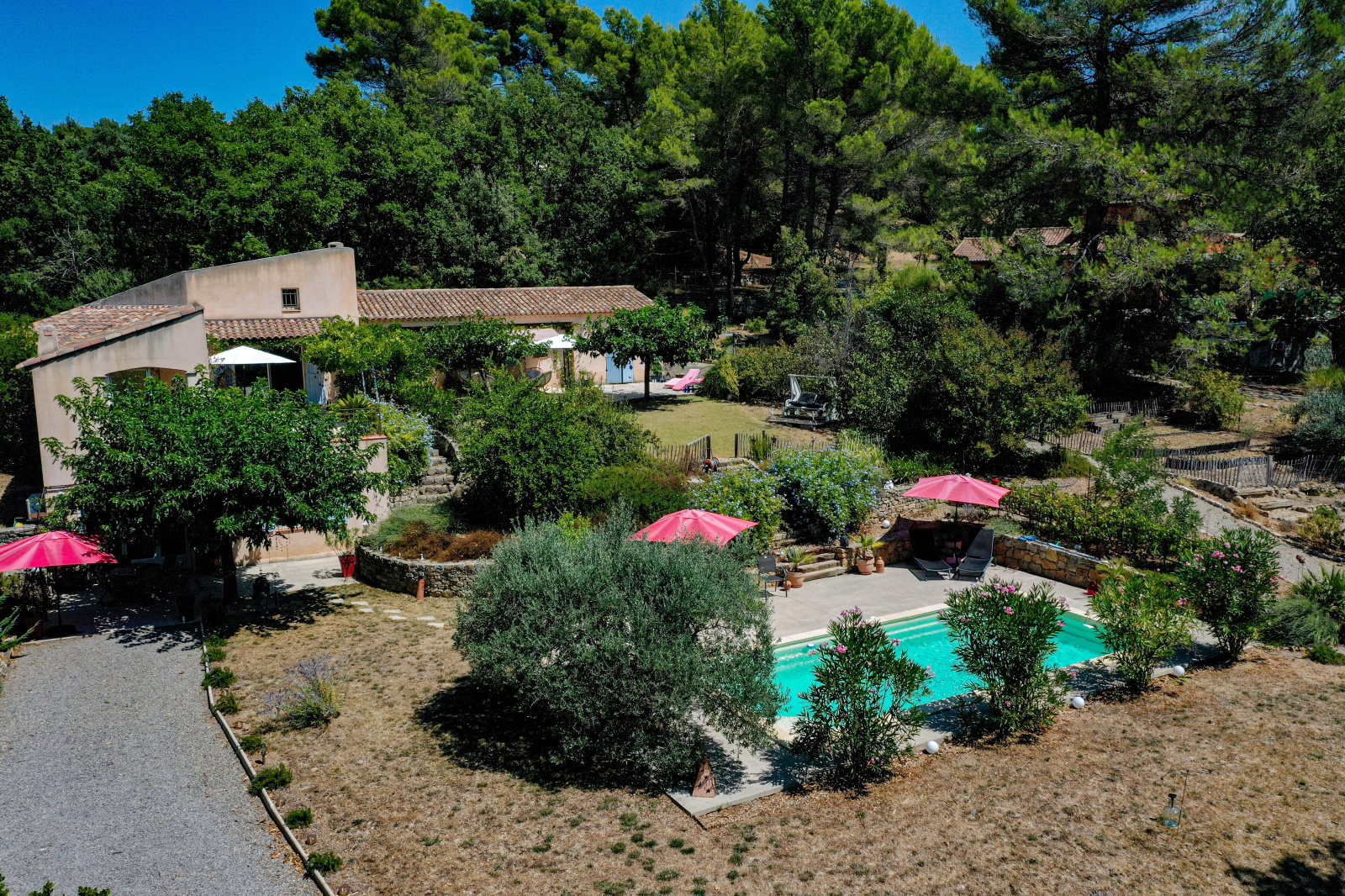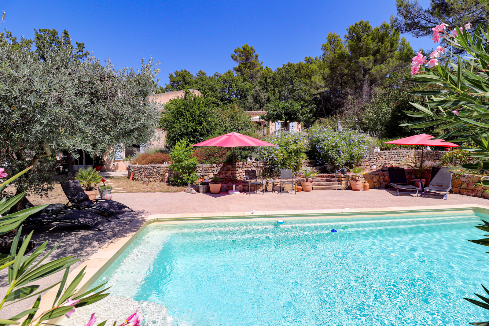 En dessous et donnant sur la piscine un superbe appartement indépendant meublé de 2 pièces avec séjour/cuisine équipée, et une chambre de 23m² salle d'eau et wc (idéal gîtes). Cave et vide sanitaire. Le jardin est superbe, planté d'espèces méridionales, oliviers, figuiers, chêne centenaire... Piscine de 9x4 avec plages autour. Différents abris de jardin, récupérateurs d'eau. Assainissement individuel récent. 2 accès possibles sur la propriété, portail automatique, adoucisseur eau... Beaucoup de potentiel. Un environnement de qualité, au grand calme et proche du village de Flayosc. Une très belle affaire ! SOGIP l'agence historique du village depuis 40 ans. Caroline et Bruno sont à votre écoute.