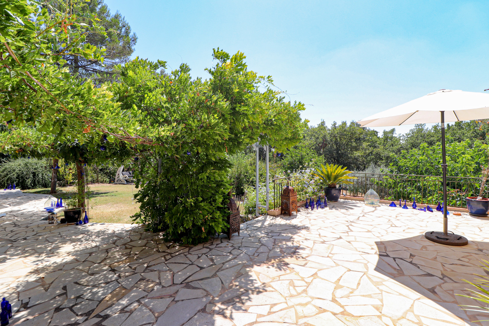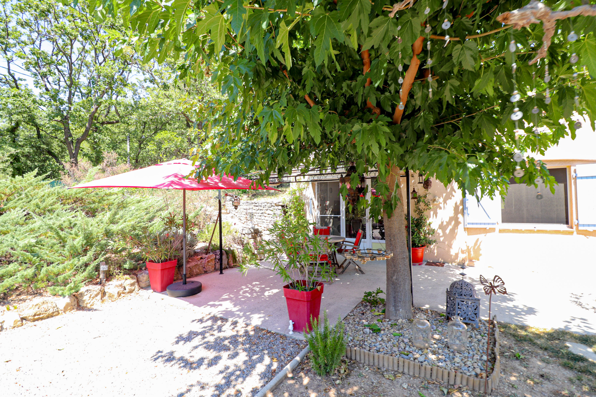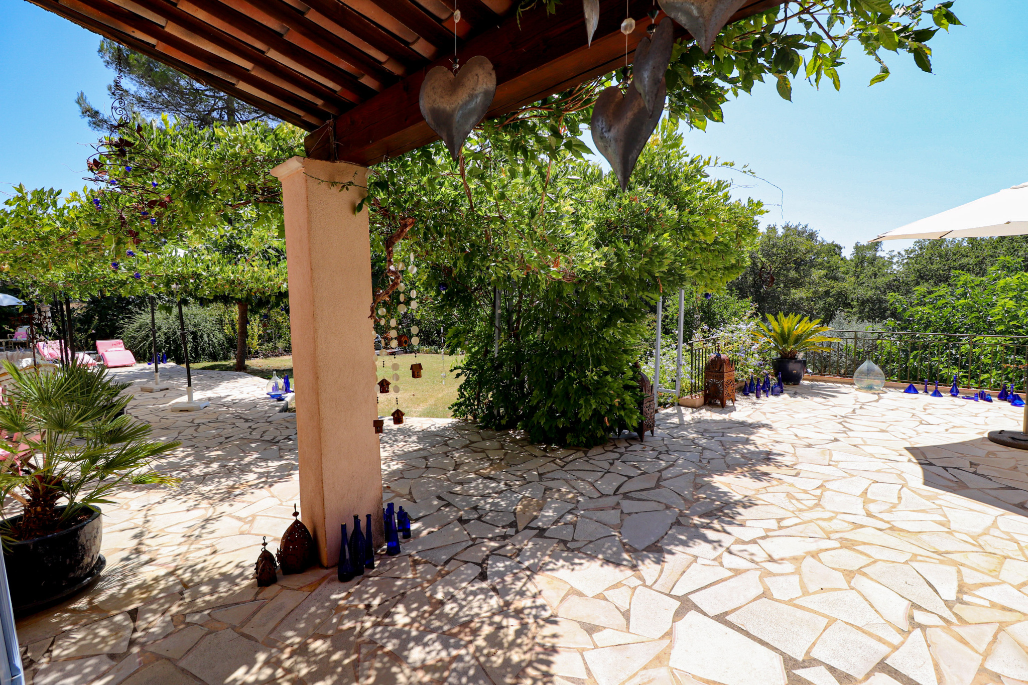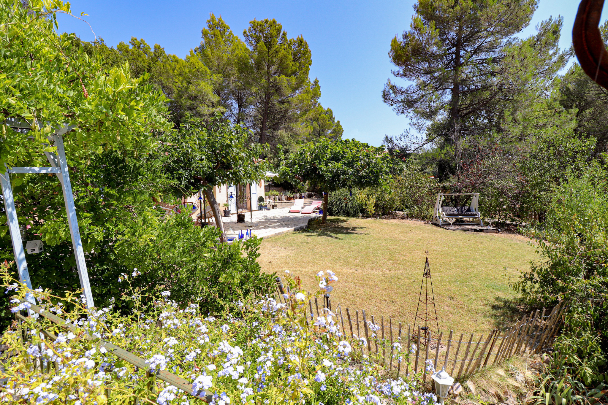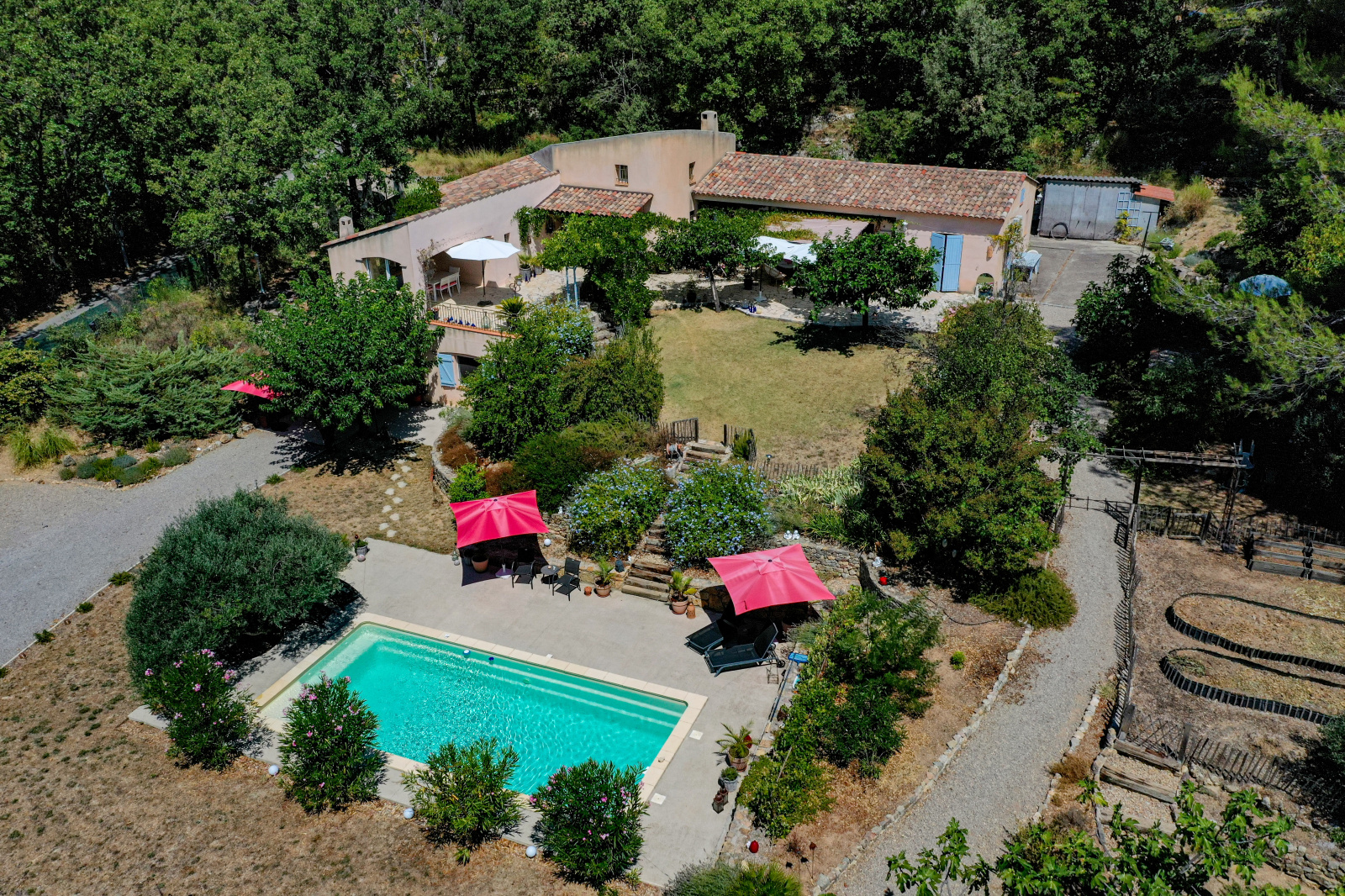 En dessous et donnant sur la piscine un superbe appartement indépendant meublé de 2 pièces avec séjour/cuisine équipée, et une chambre de 23m² salle d'eau et wc (idéal gîtes). Cave et vide sanitaire. Le jardin est superbe, planté d'espèces méridionales, oliviers, figuiers, chêne centenaire... Piscine de 9x4 avec plages autour. Différents abris de jardin, récupérateurs d'eau. Assainissement individuel récent. 2 accès possibles sur la propriété, portail automatique, adoucisseur eau... Beaucoup de potentiel. Un environnement de qualité, au grand calme et proche du village de Flayosc. Une très belle affaire ! SOGIP l'agence historique du village depuis 40 ans. Caroline et Bruno sont à votre écoute.