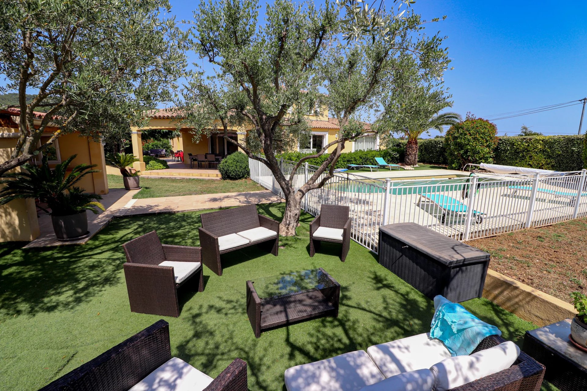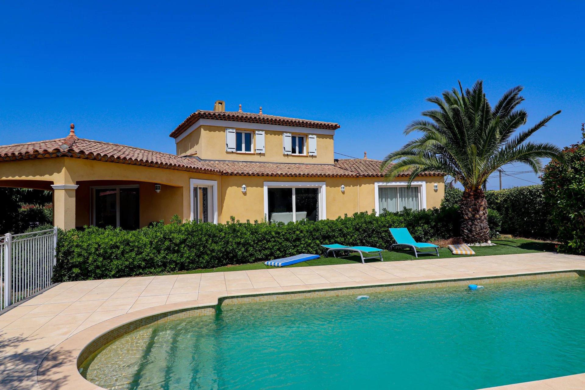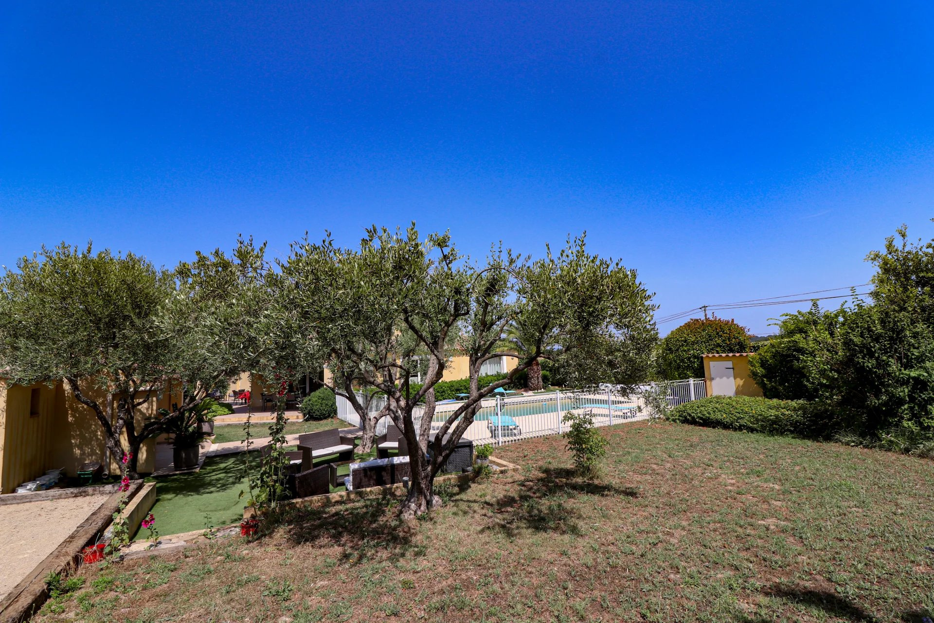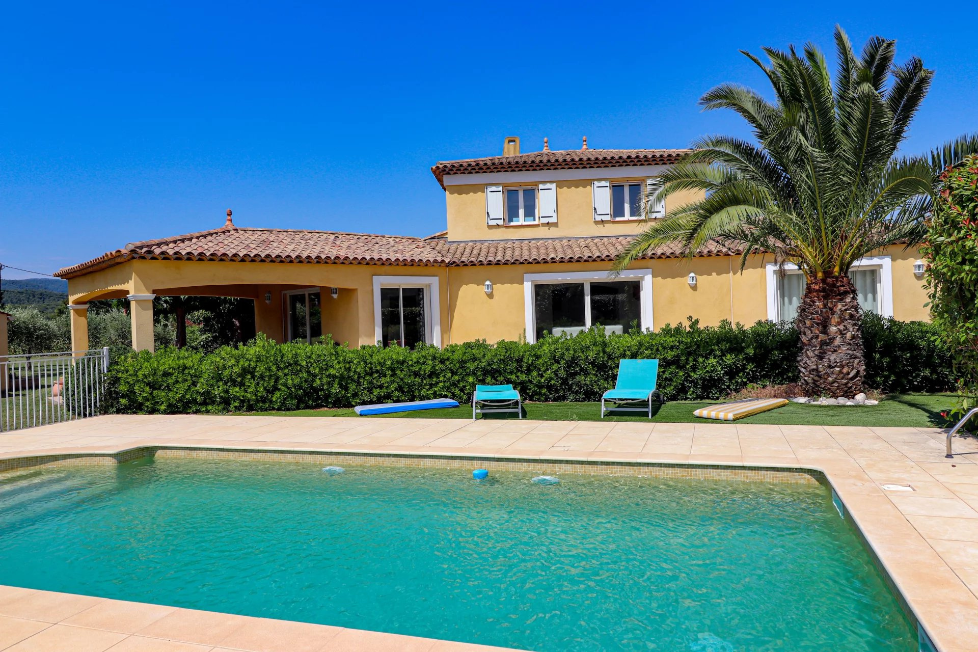 VENDU PAR VOTRE AGENCE SOGIP ! Draguignan proche du village de Flayosc, une Villa en parfait état très lumineuse avec 3 chambres, dépendances et Piscine sur 4000m² de parc clos, remarquablement paysagé et plat. Prestations raffinées. De plain-Pied : Vaste hall d'entrée donnant sur une pièce de vie de 68m² avec salle à manger, cuisine équipée de 23m², cellier/buanderie et garage carrelé de 32m². Une suite parentale avec dressing et salle de bain. Wc et lave mains indépendant. A l'étage : 2 chambres, salle de bain et Wc indépendant. Un espace détente avec superbe Piscine carrelée de 8x4, cuisine d'été/pool house et salle d'eau WC. Terrasses couvertes et non couvertes, jeux de boules. Abri de jardin, Parking pour les véhicules, Portail automatique... Superbe terrain plat de 4000m² planté de fruitiers et d'oliviers. facile d'entretien, et véritable jardin d'agrément. Aucun vis-à-vis. Pompe à chaleur avec plancher rafraichissant, baies vitrées à galandage, volets roulants électriques. Quartier Résidentiel et campagne, accès facile. Une très belle affaire avec de très belles prestations. Le bien est en parfait état. SOGIP à Flayosc depuis plus de 30 ans Caroline et Bruno à votre écoute.