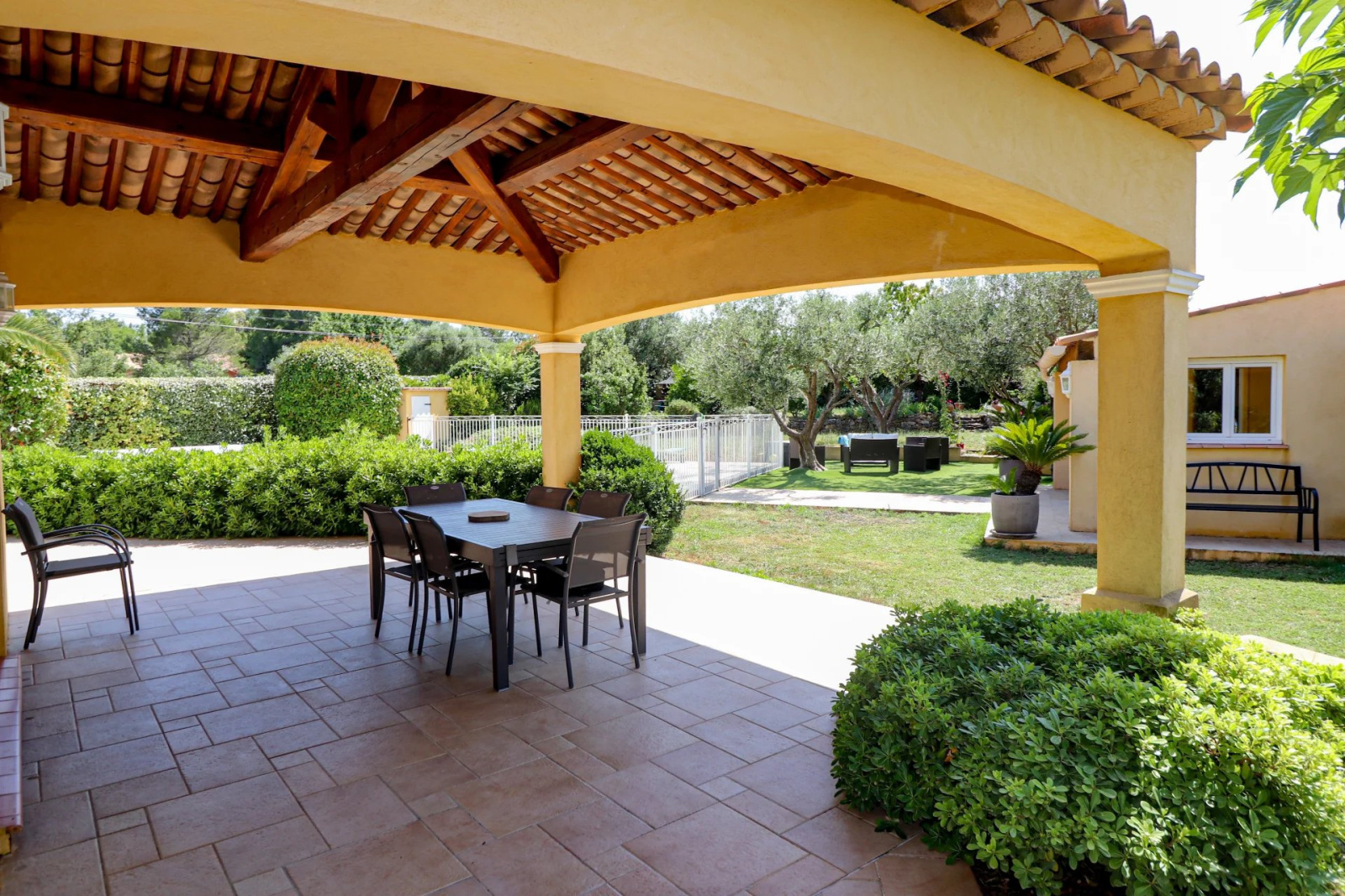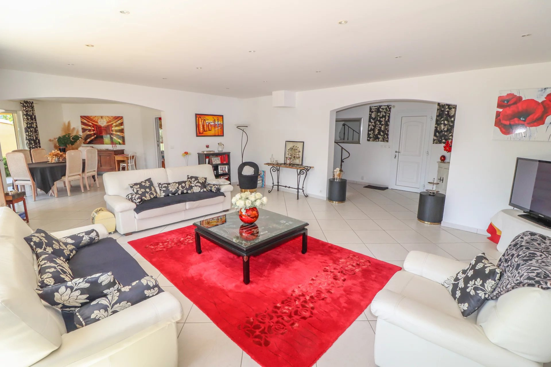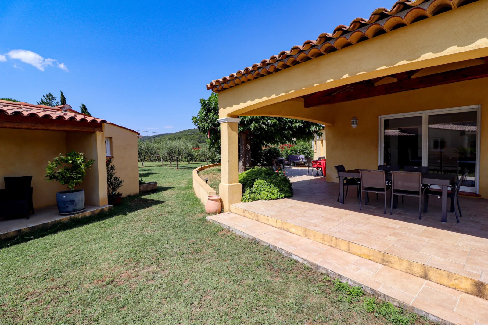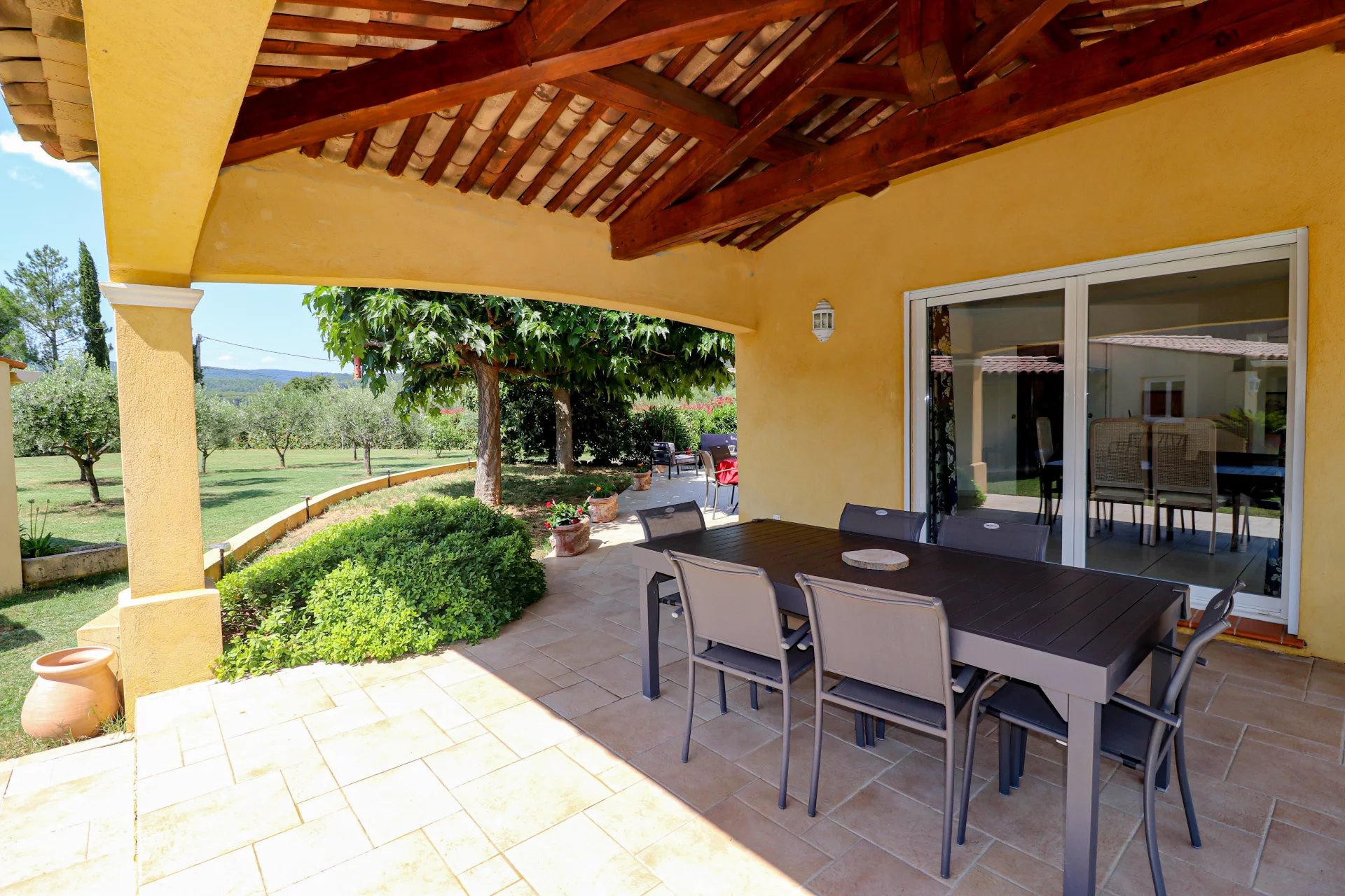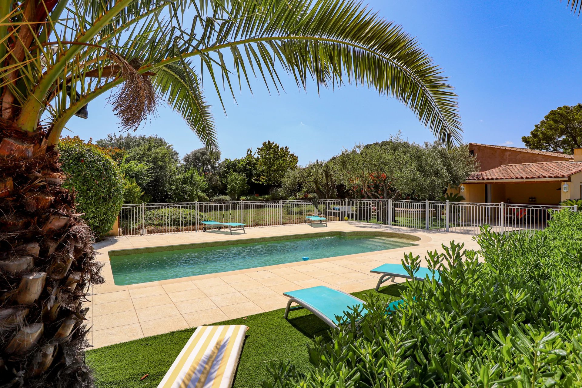 VENDU PAR VOTRE AGENCE SOGIP ! Draguignan proche du village de Flayosc, une Villa en parfait état très lumineuse avec 3 chambres, dépendances et Piscine sur 4000m² de parc clos, remarquablement paysagé et plat. Prestations raffinées. De plain-Pied : Vaste hall d'entrée donnant sur une pièce de vie de 68m² avec salle à manger, cuisine équipée de 23m², cellier/buanderie et garage carrelé de 32m². Une suite parentale avec dressing et salle de bain. Wc et lave mains indépendant. A l'étage : 2 chambres, salle de bain et Wc indépendant. Un espace détente avec superbe Piscine carrelée de 8x4, cuisine d'été/pool house et salle d'eau WC. Terrasses couvertes et non couvertes, jeux de boules. Abri de jardin, Parking pour les véhicules, Portail automatique... Superbe terrain plat de 4000m² planté de fruitiers et d'oliviers. facile d'entretien, et véritable jardin d'agrément. Aucun vis-à-vis. Pompe à chaleur avec plancher rafraichissant, baies vitrées à galandage, volets roulants électriques. Quartier Résidentiel et campagne, accès facile. Une très belle affaire avec de très belles prestations. Le bien est en parfait état. SOGIP à Flayosc depuis plus de 30 ans Caroline et Bruno à votre écoute.